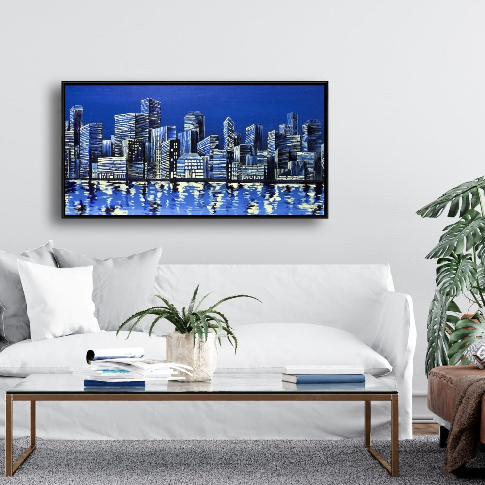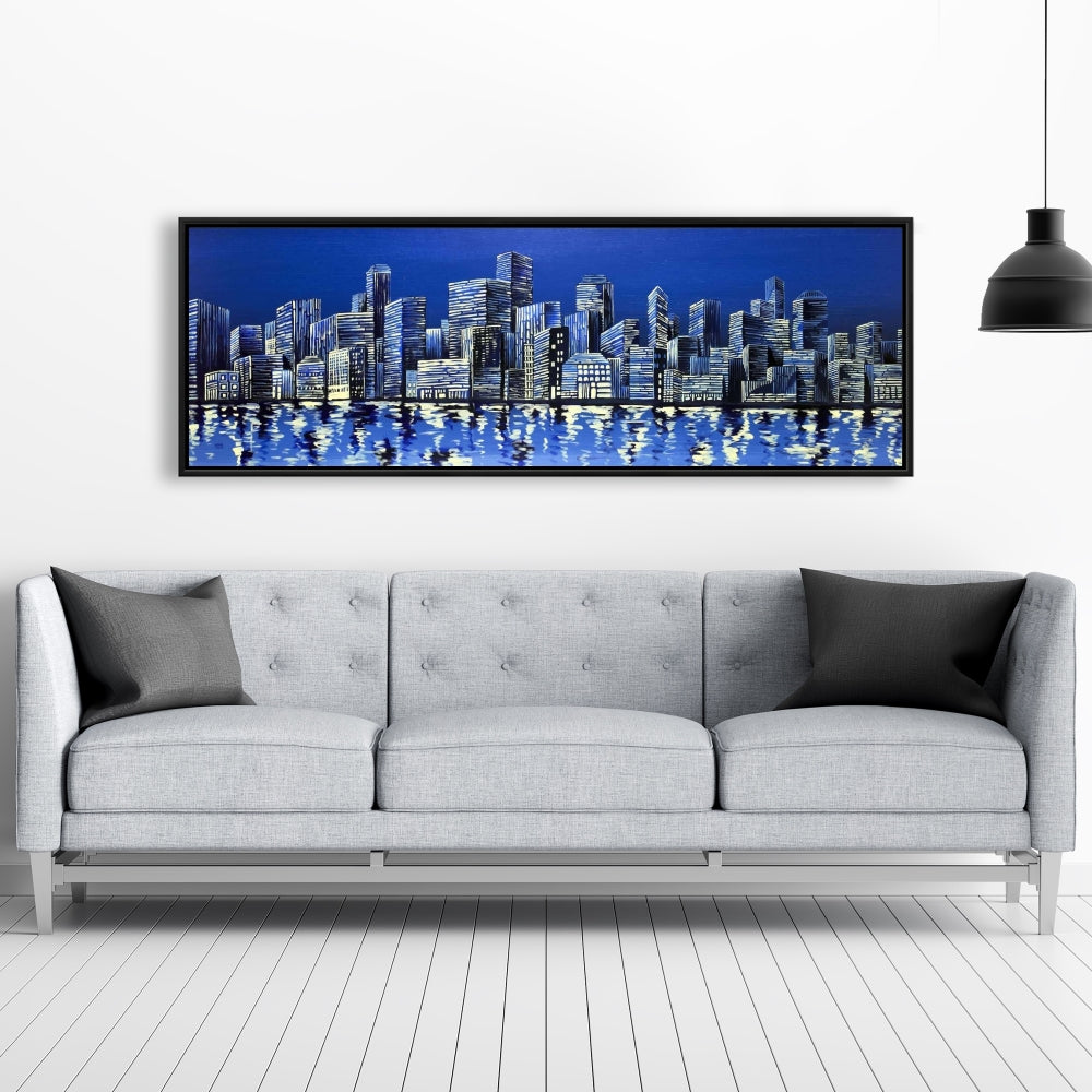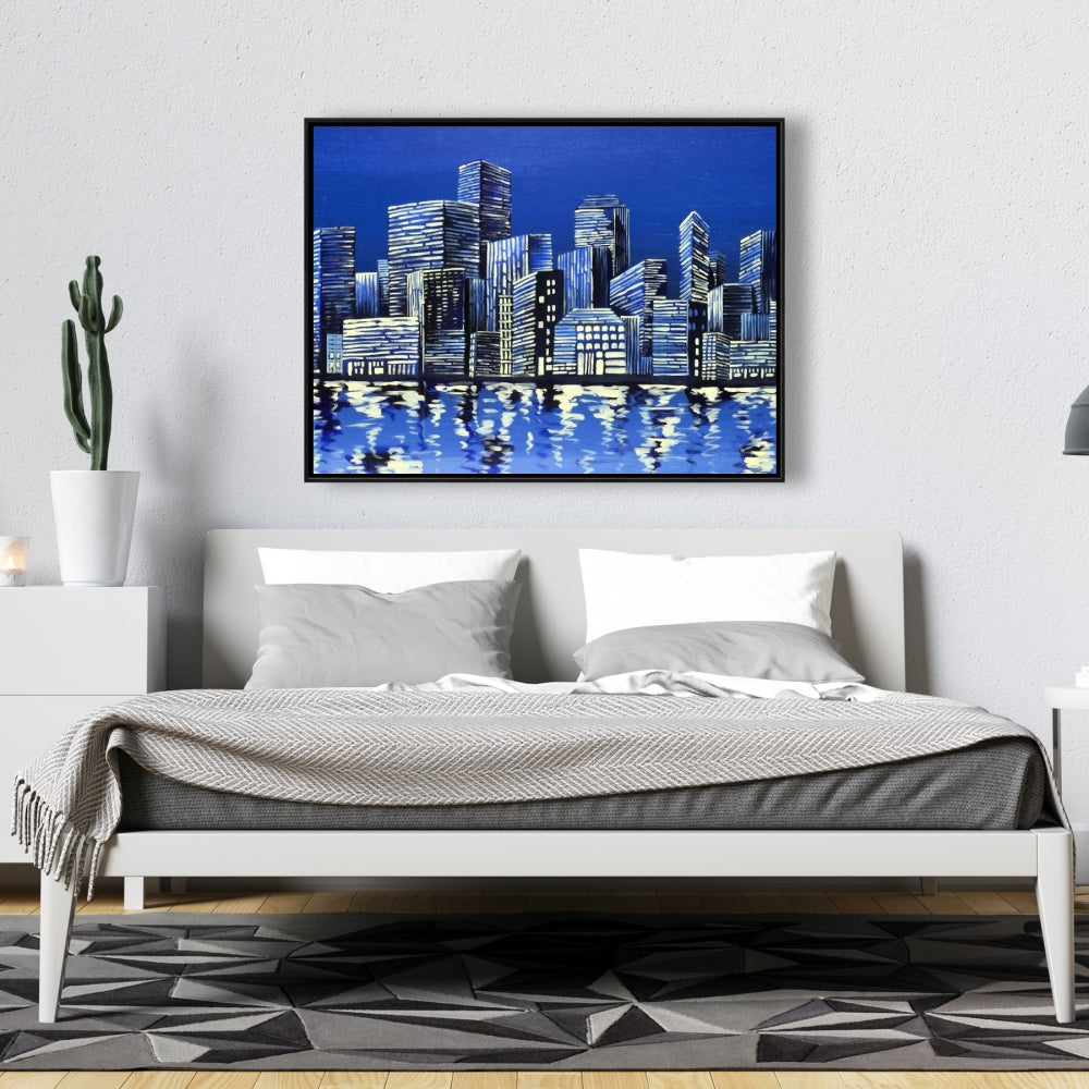 Toile encadrée « Ville en bleu » - Décoration murale pour chambre à coucher