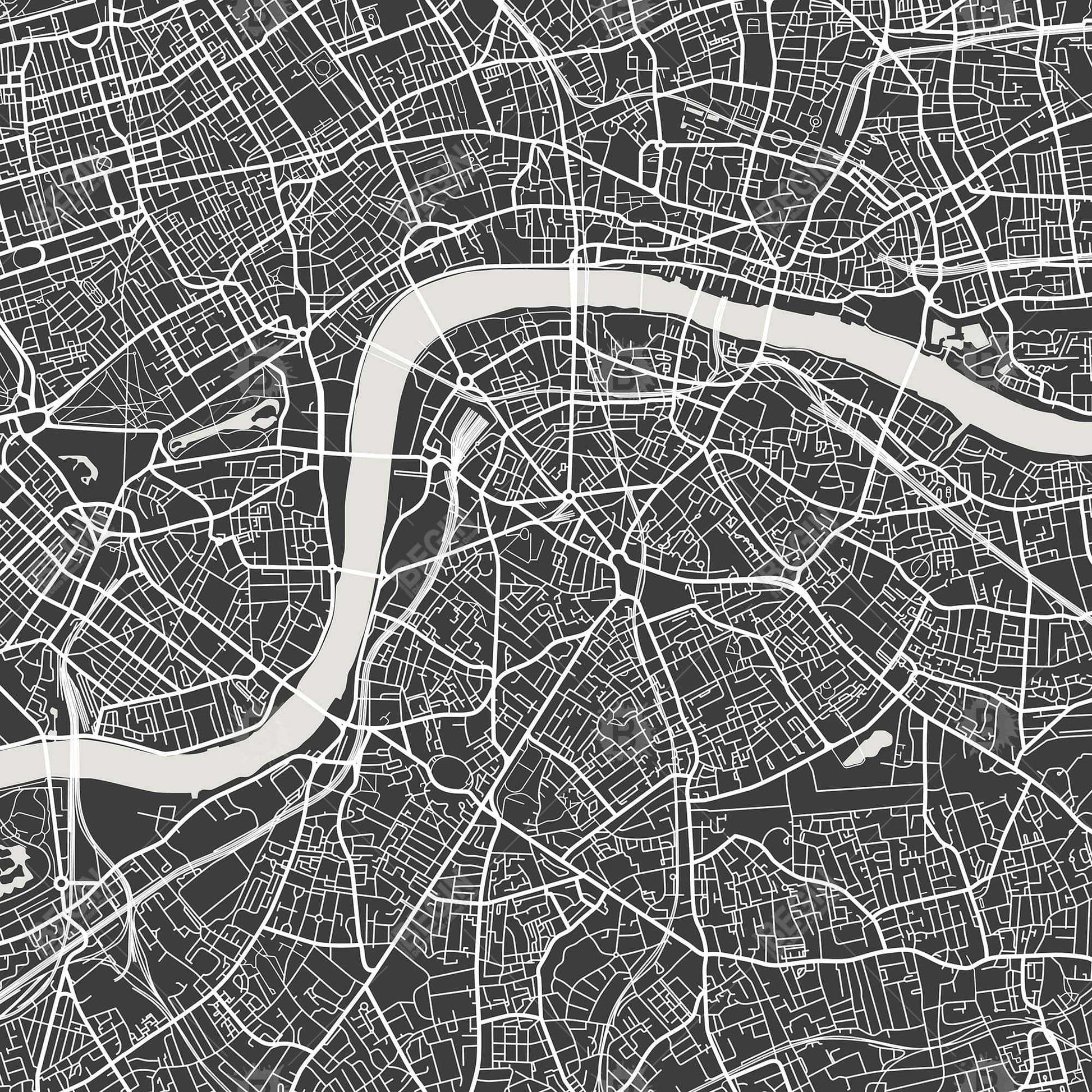 Plan de Londres sur toile | Formes grises et bleues encadrées