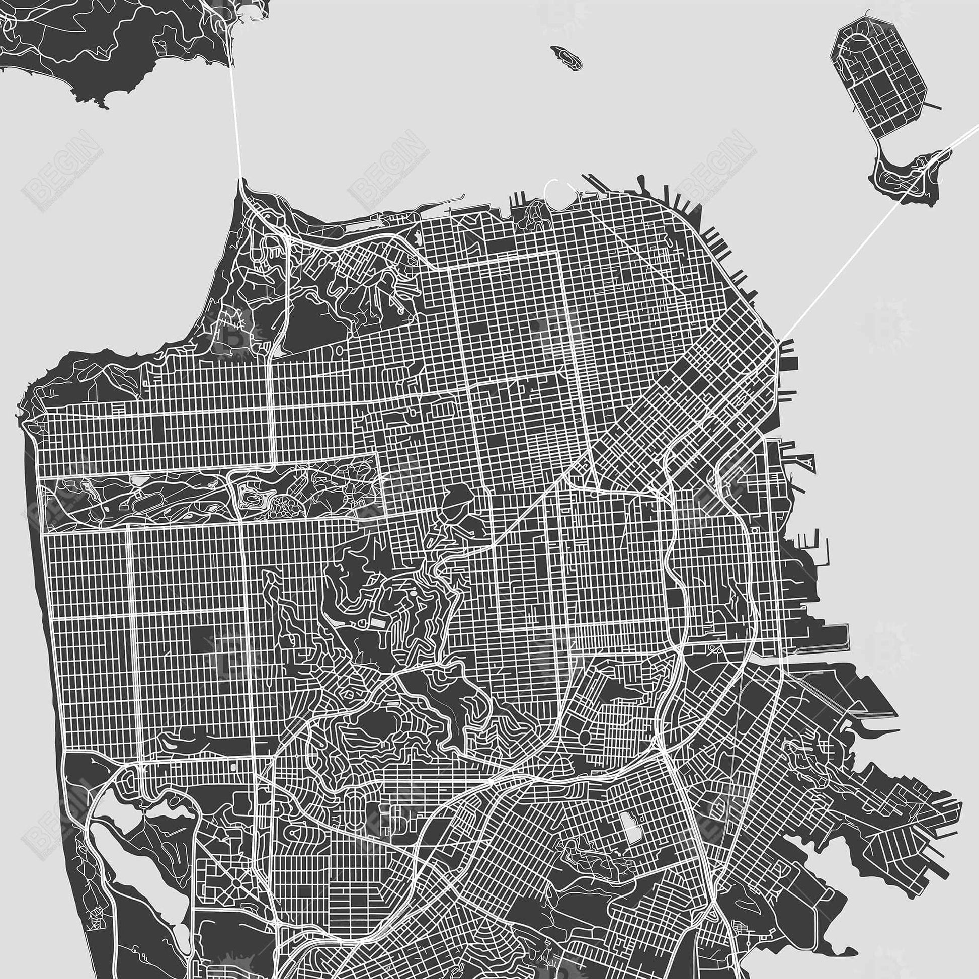 Toile encadrée représentant le plan de la ville de San Francisco | Décoration d'intérieur industrielle