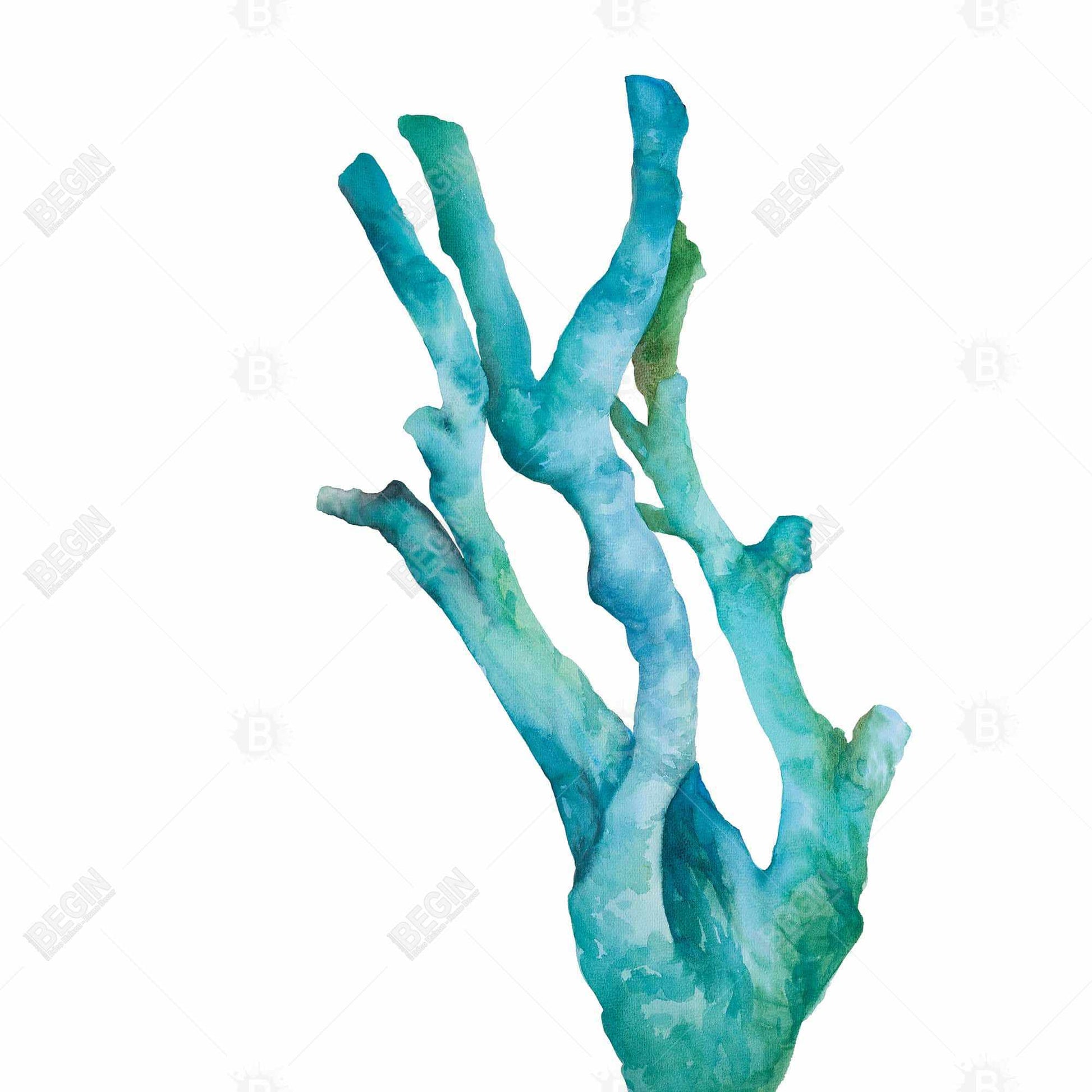 Petite toile aquarelle corail marin - Décoration minimaliste bleue