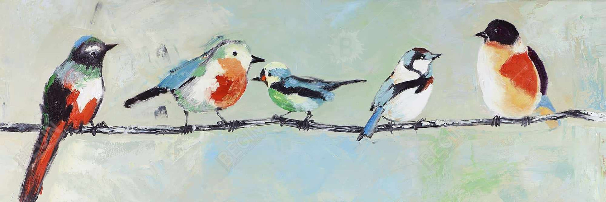 Petits oiseaux abstraits et colorés | Toile encadrée pour décoration d'intérieur