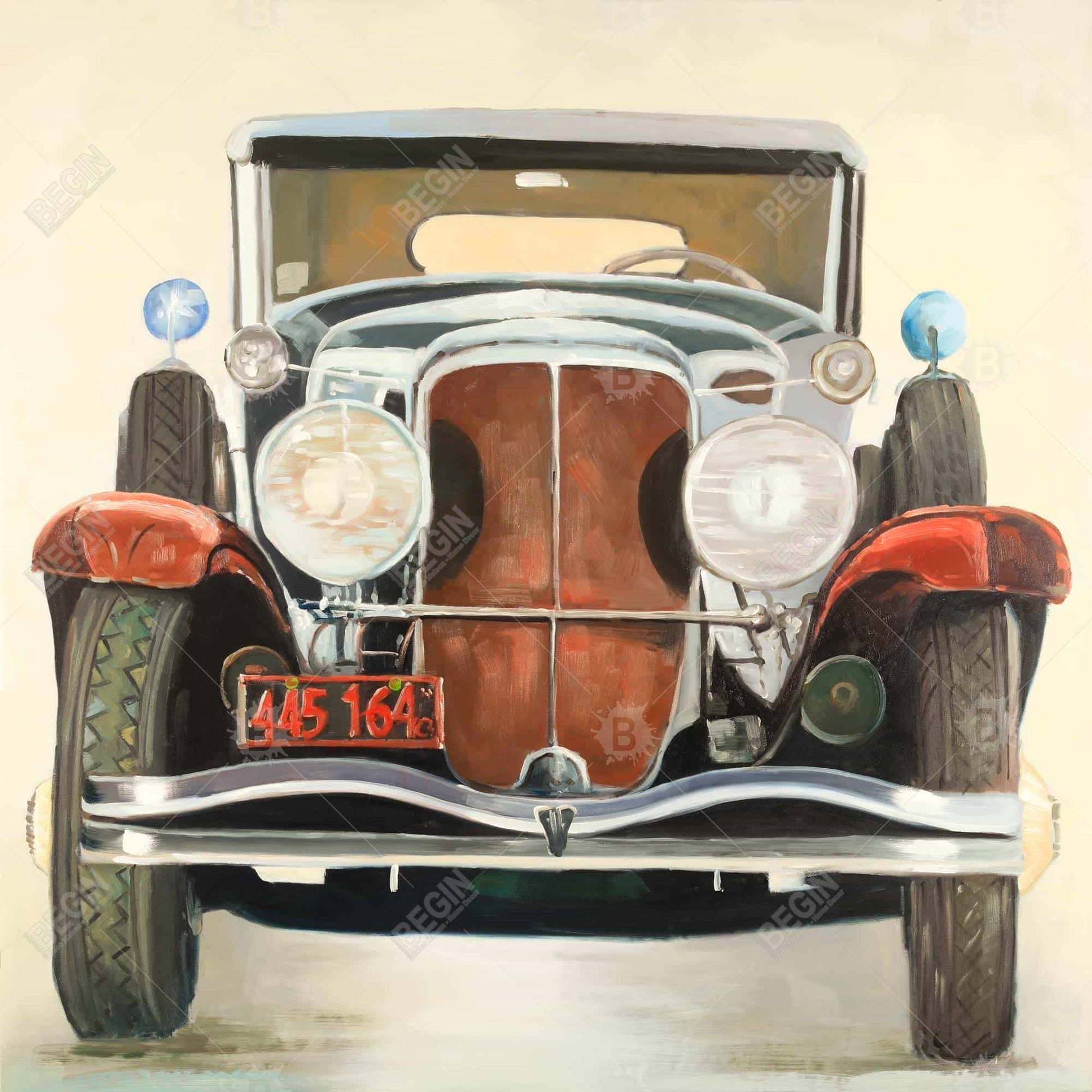 Toile encadrée représentant une voiture de luxe vintage | Décoration d'intérieur marron