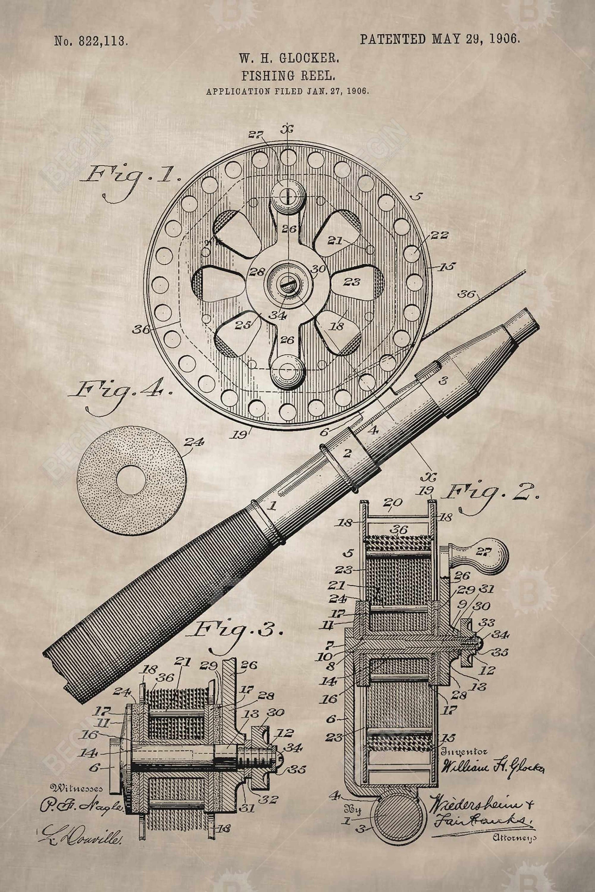 Toile vintage beige avec motif de moulinet de pêche | Décoration d'intérieur