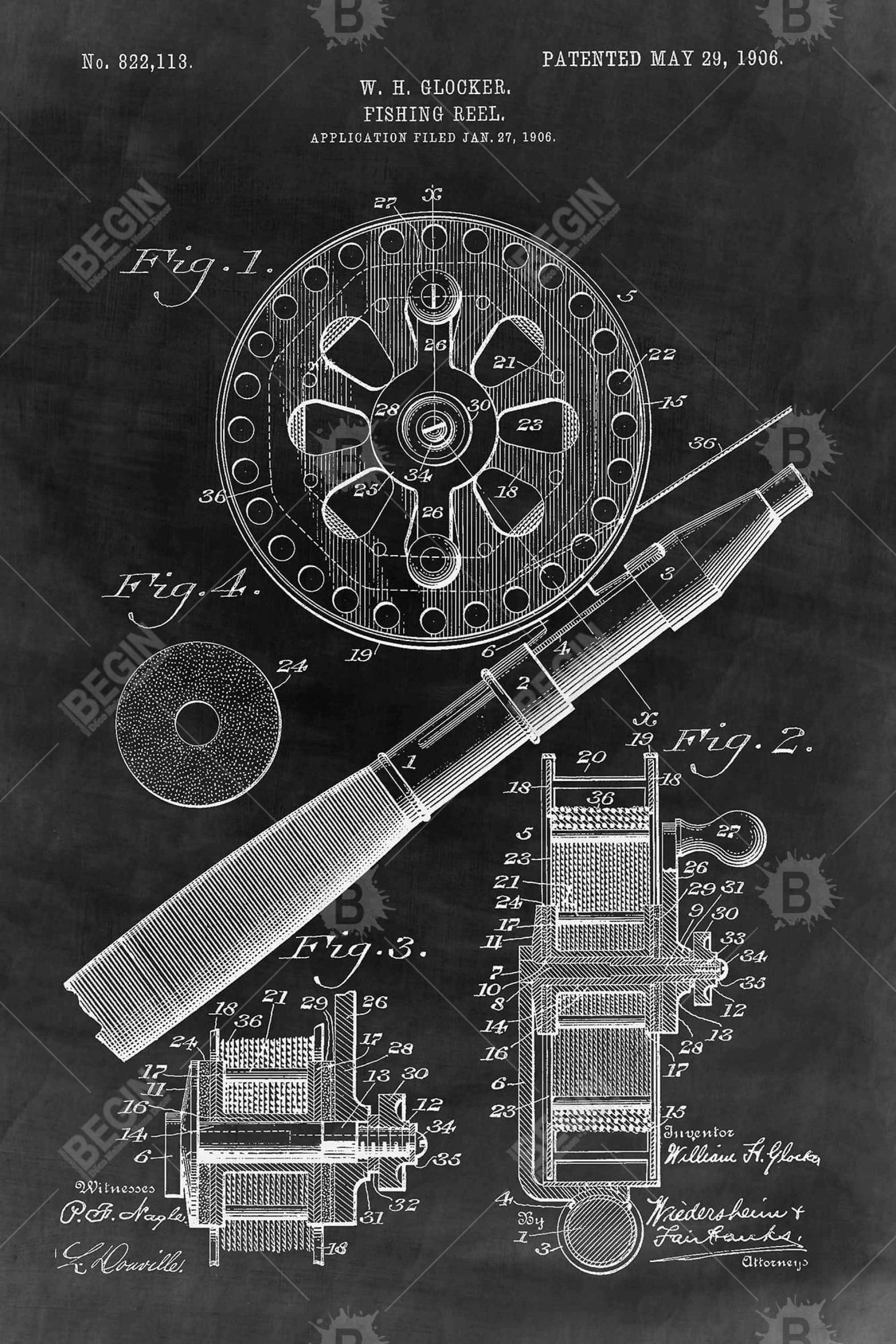 Toile de salon vintage | Décor moulinet de pêche noir
