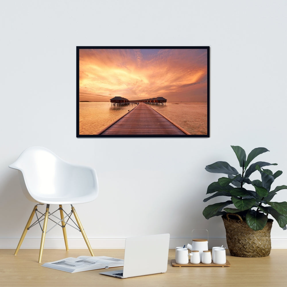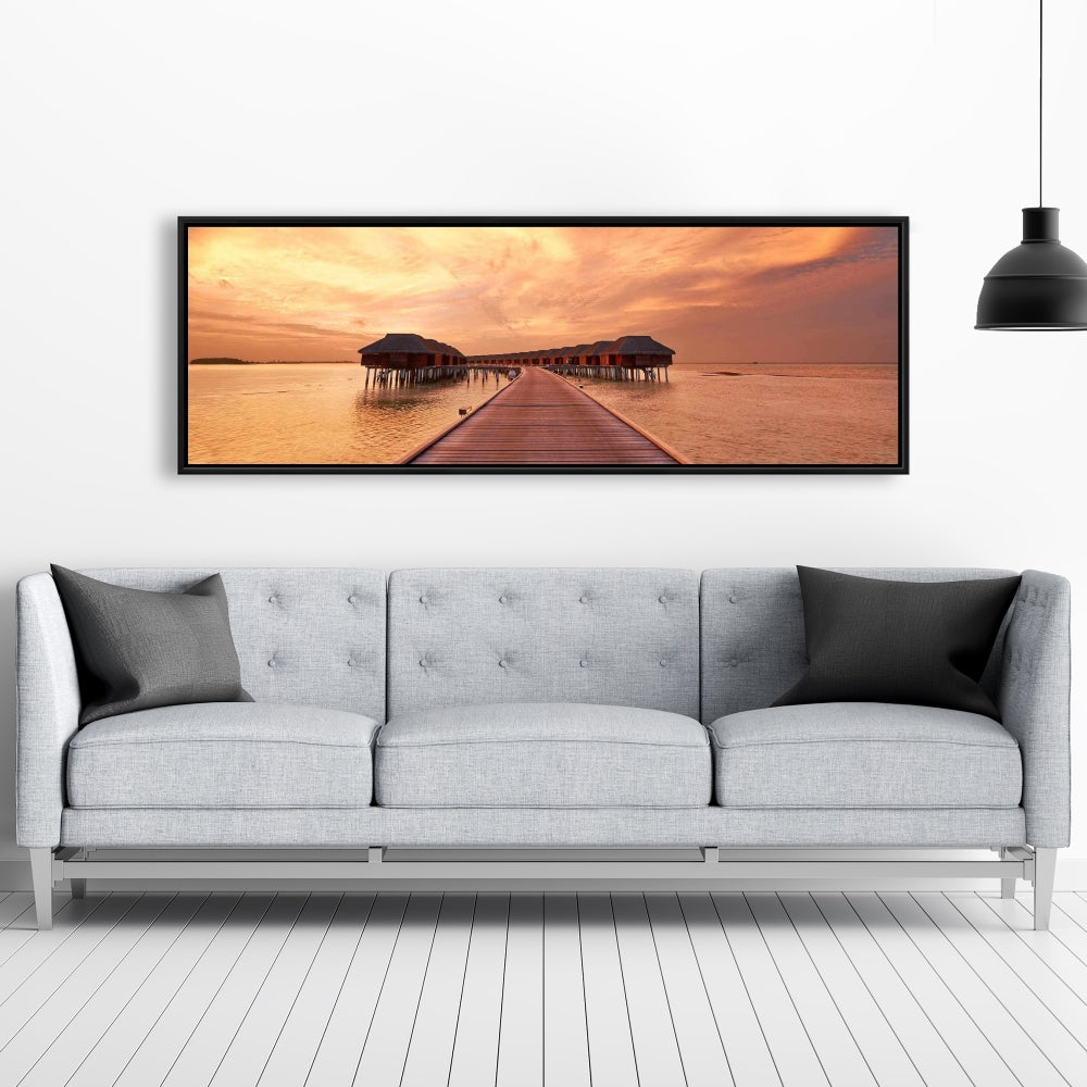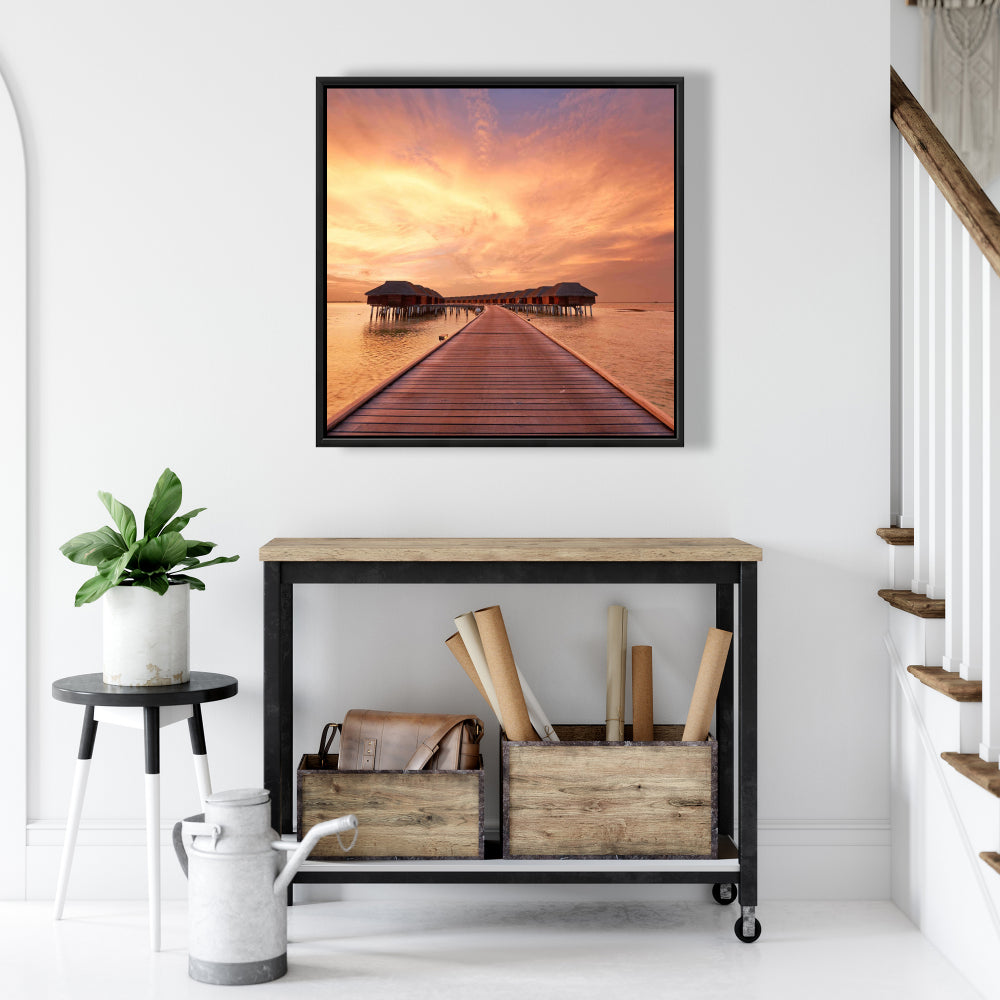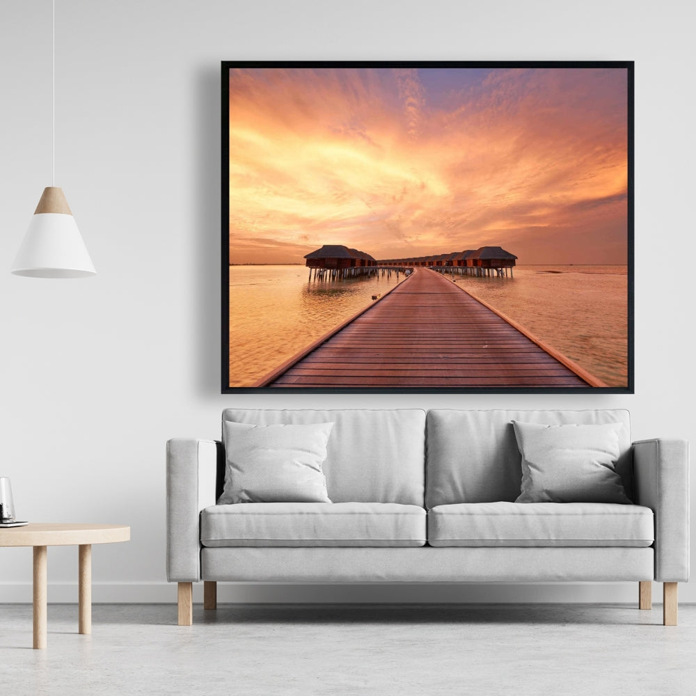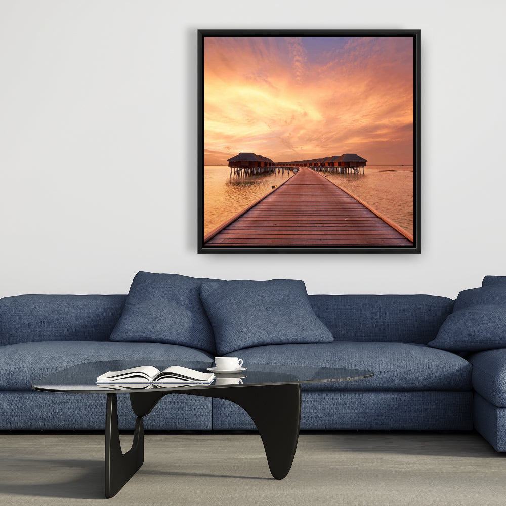 Toile corail pour chambre à coucher Sea Villas | Décoration d'intérieur encadrée
