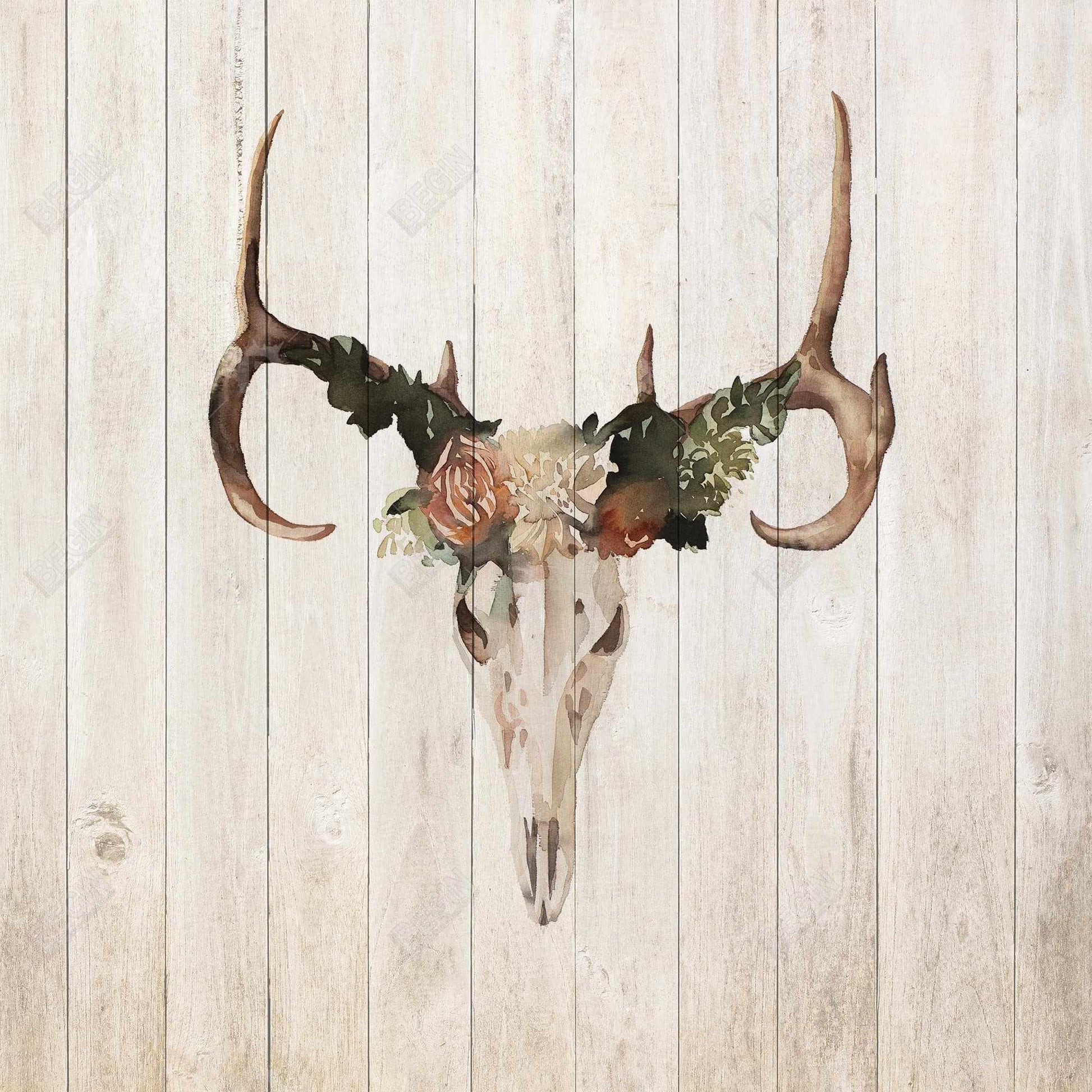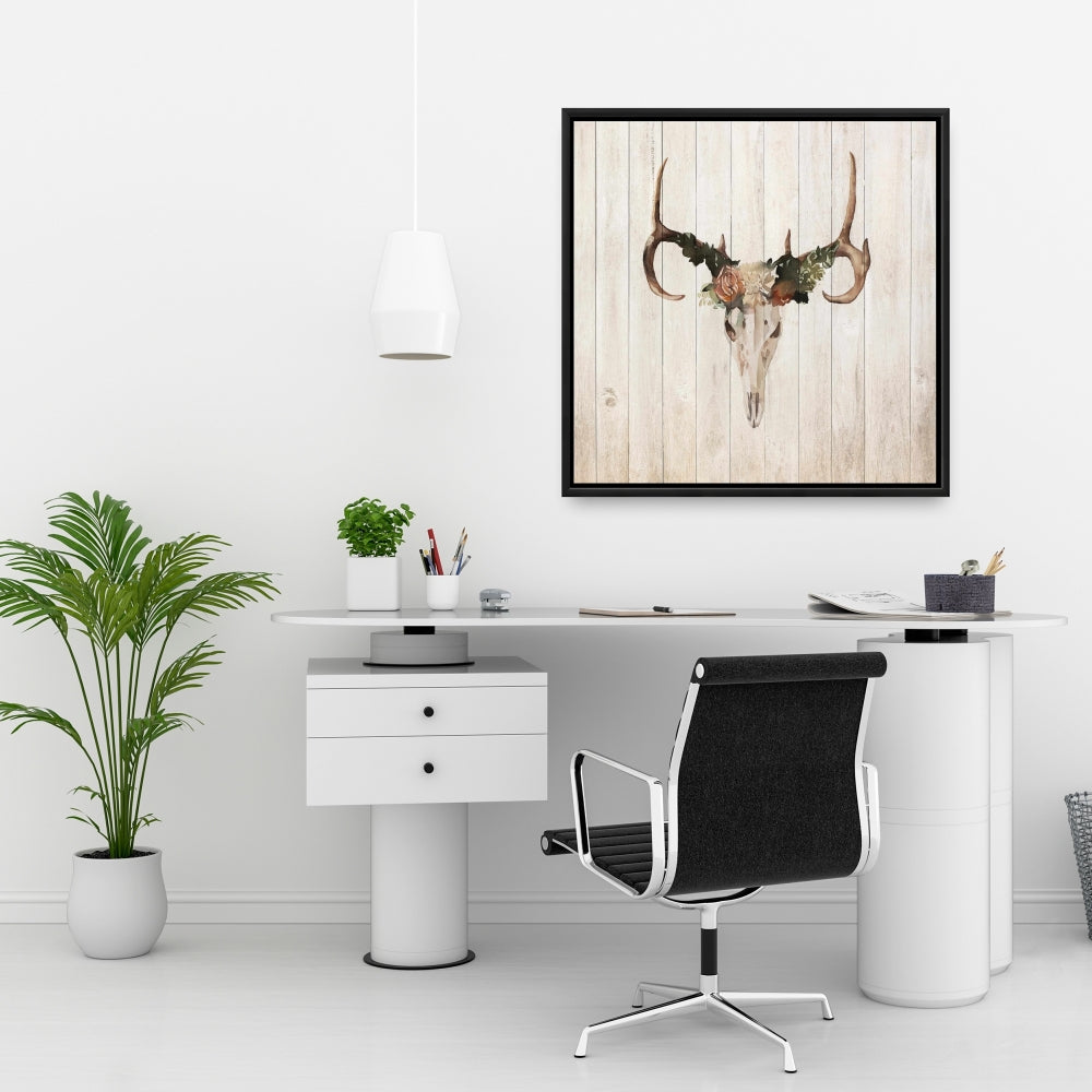 Toile « Crâne de cerf mulet avec roses » | Décoration de salle de bain rustique