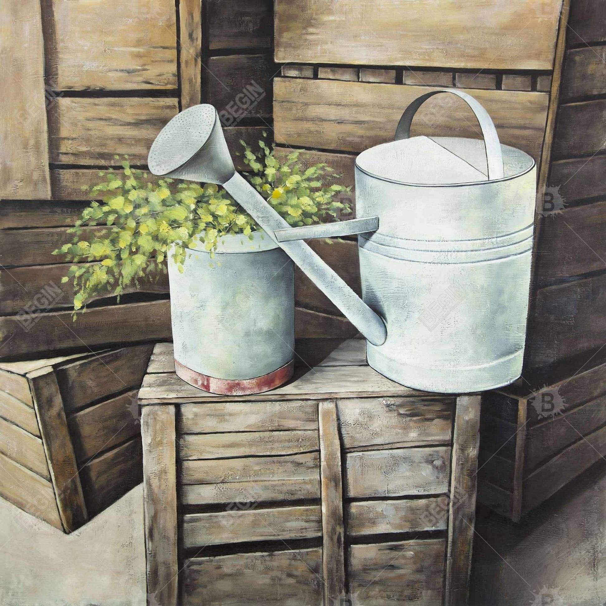 Arrosoir vintage | Toile décorative avec nature morte de fleurs marron