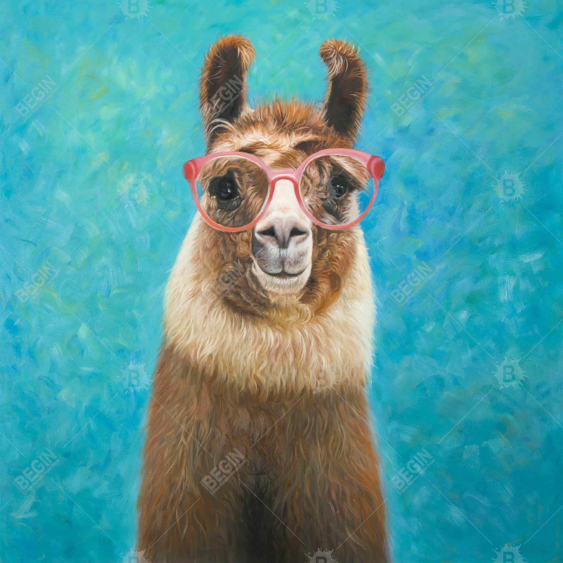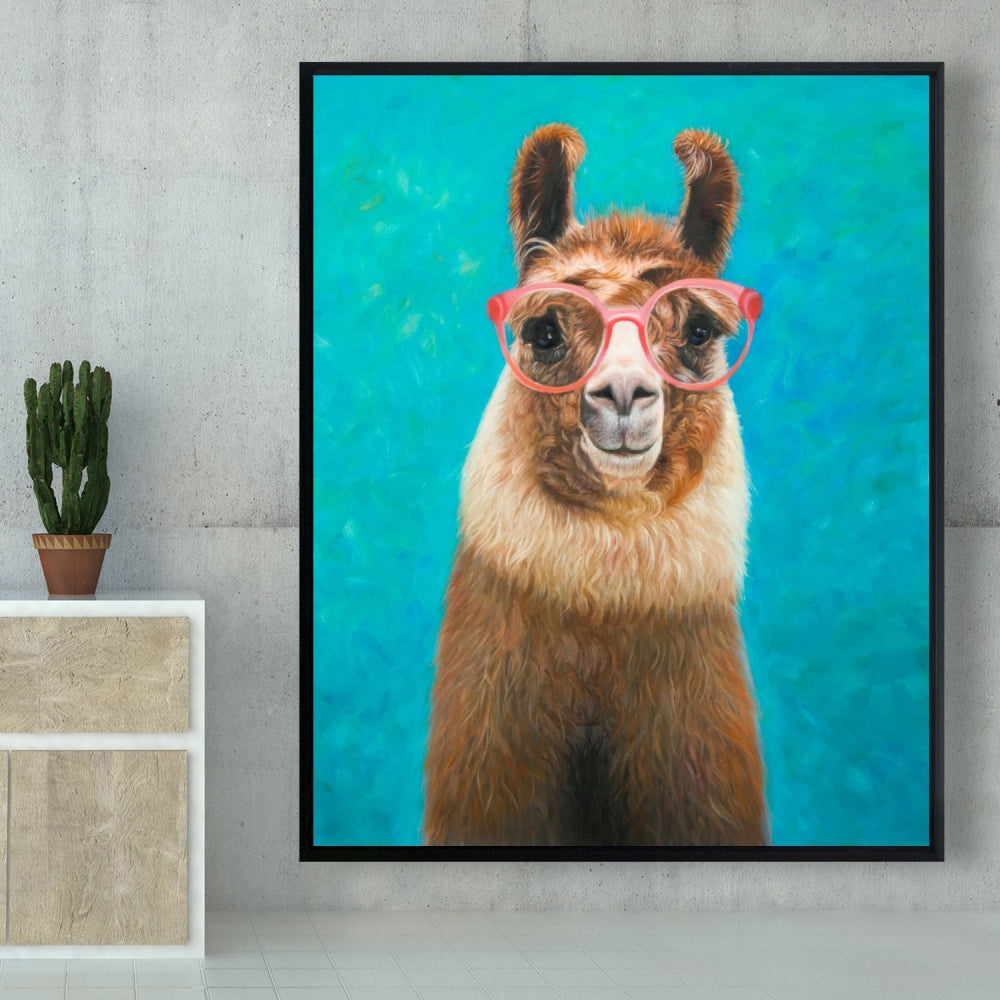 Toile de lama adorable – Décoration de chambre encadrée marron