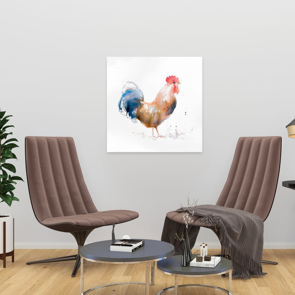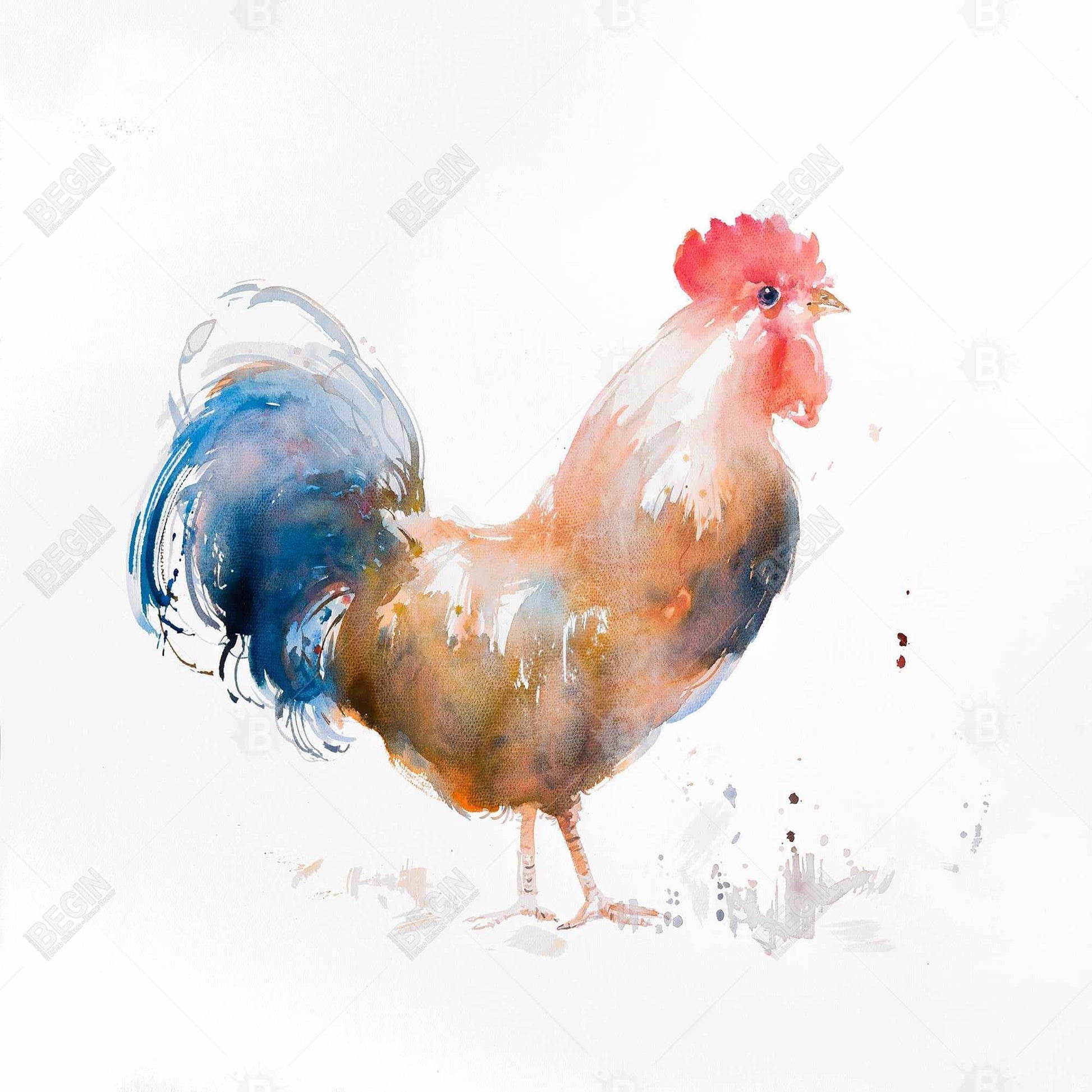 Toile aquarelle Coq | Décoration murale de cuisine avec animaux de la ferme