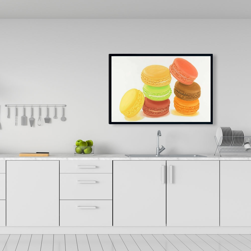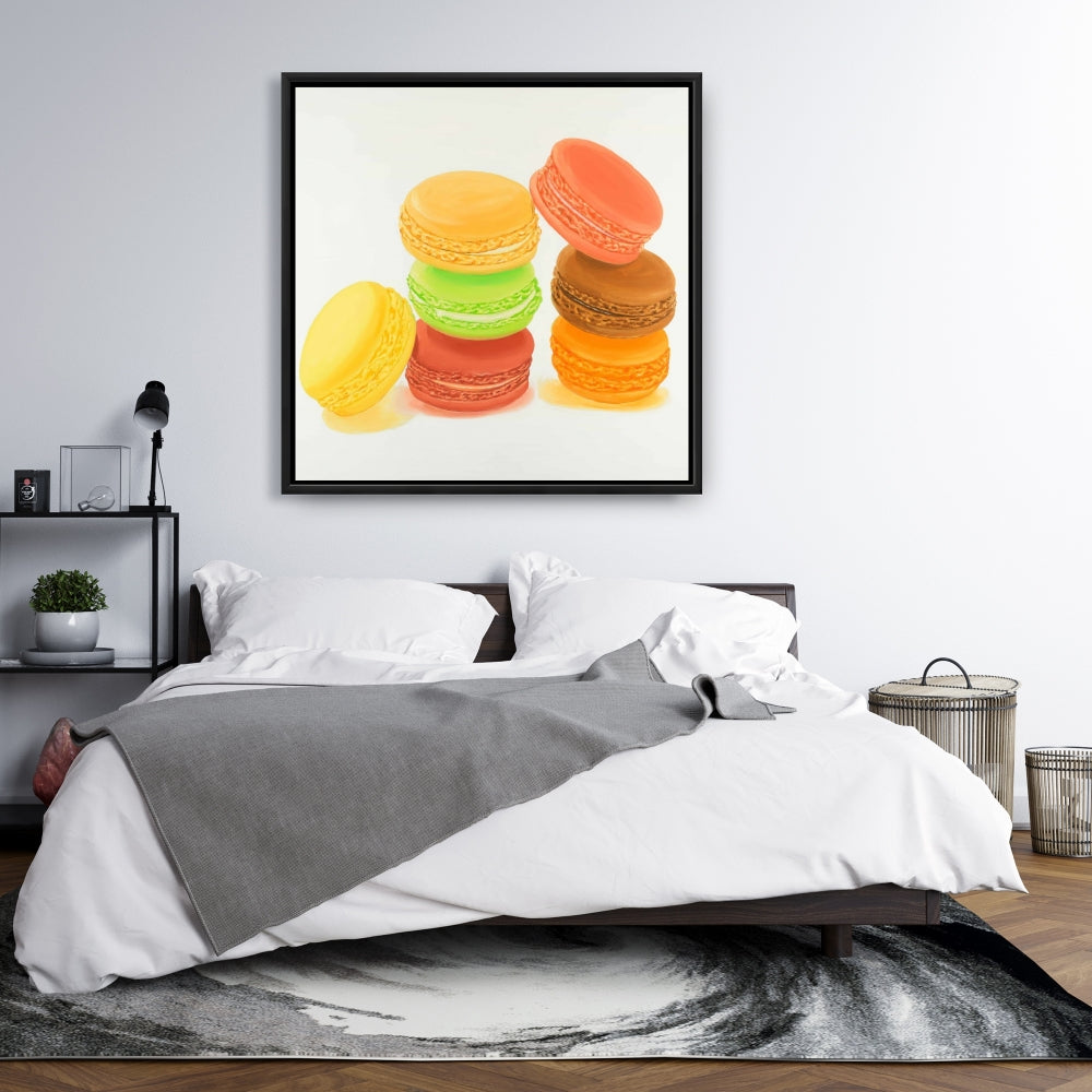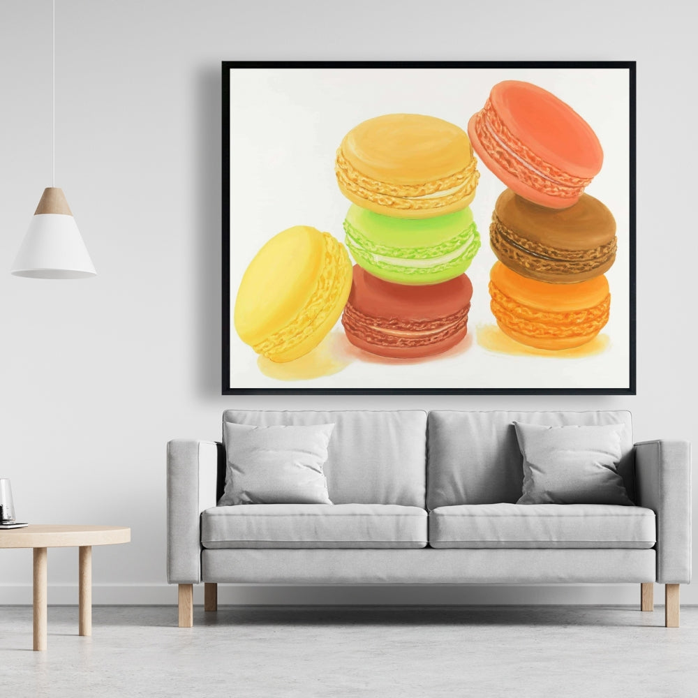 Toile « Délicieux macarons » | Décoration murale avec cadre jaune