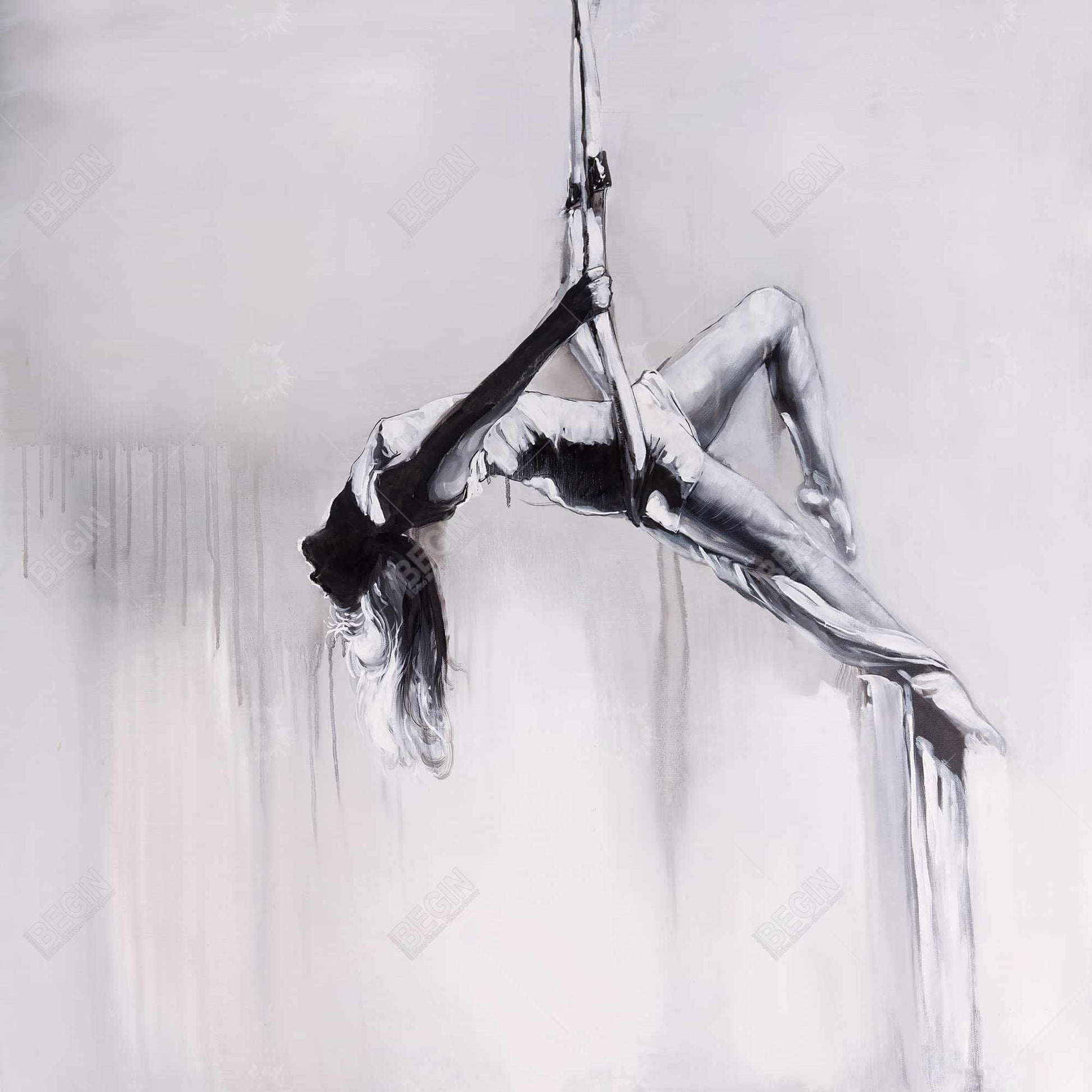 Toile de danseuse sur contorsion aérienne | Décoration d'intérieur encadrée blanche