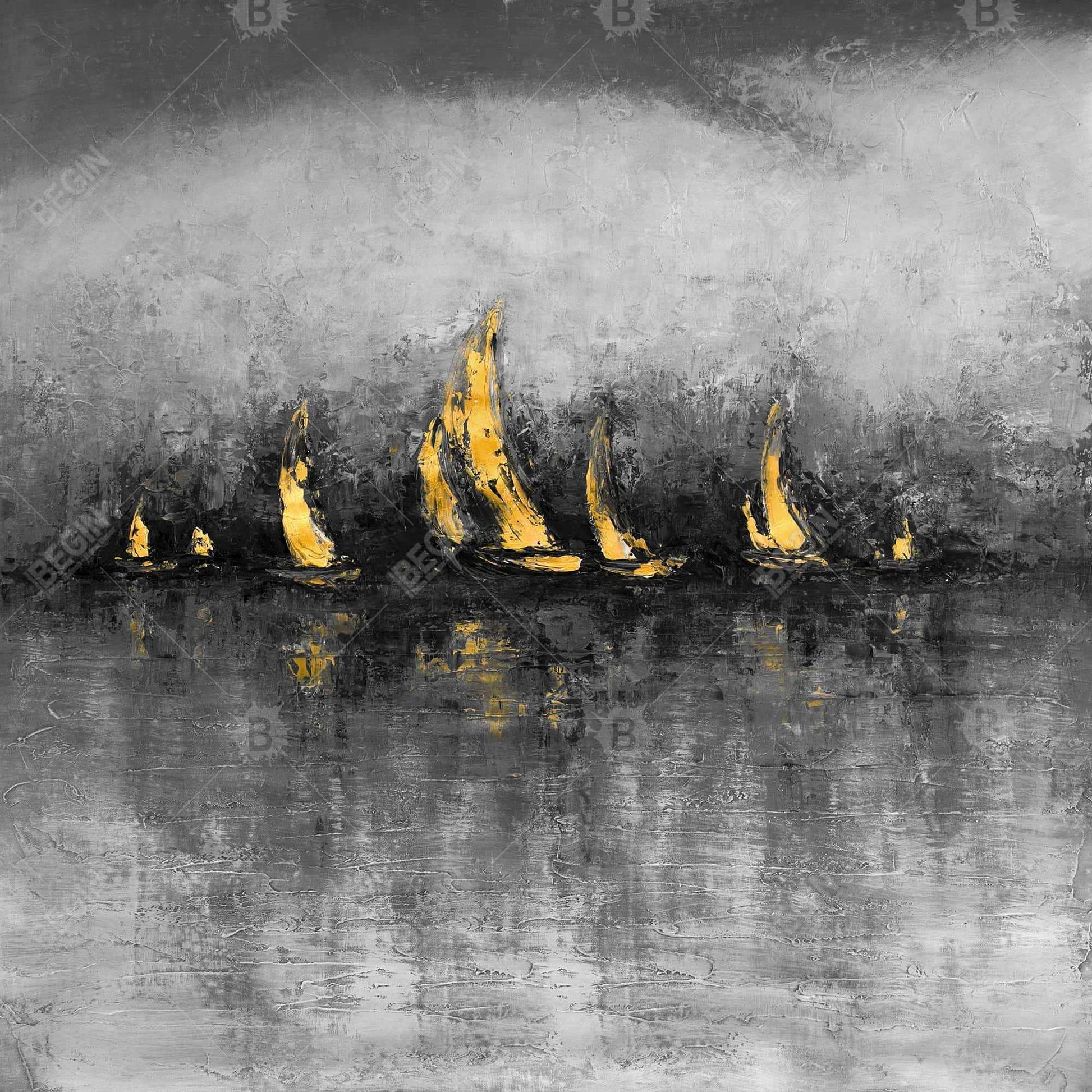 Toile de voiliers dorés | Décoration murale abstraite moderne pour chambre à coucher