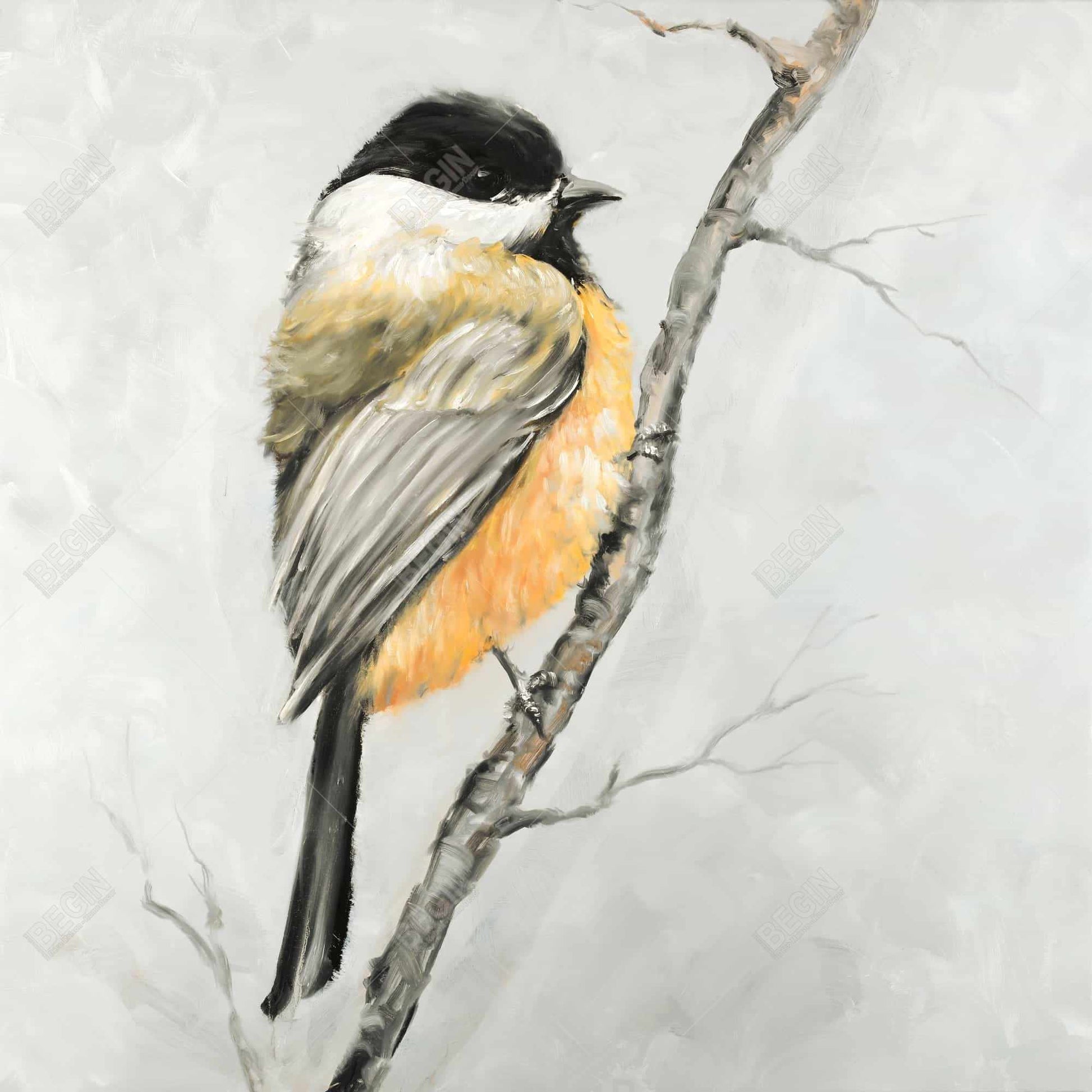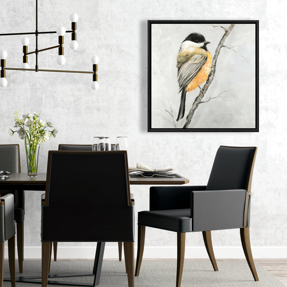 Petite mésange noire sur toile | Décoration d'oiseau encadrée grise