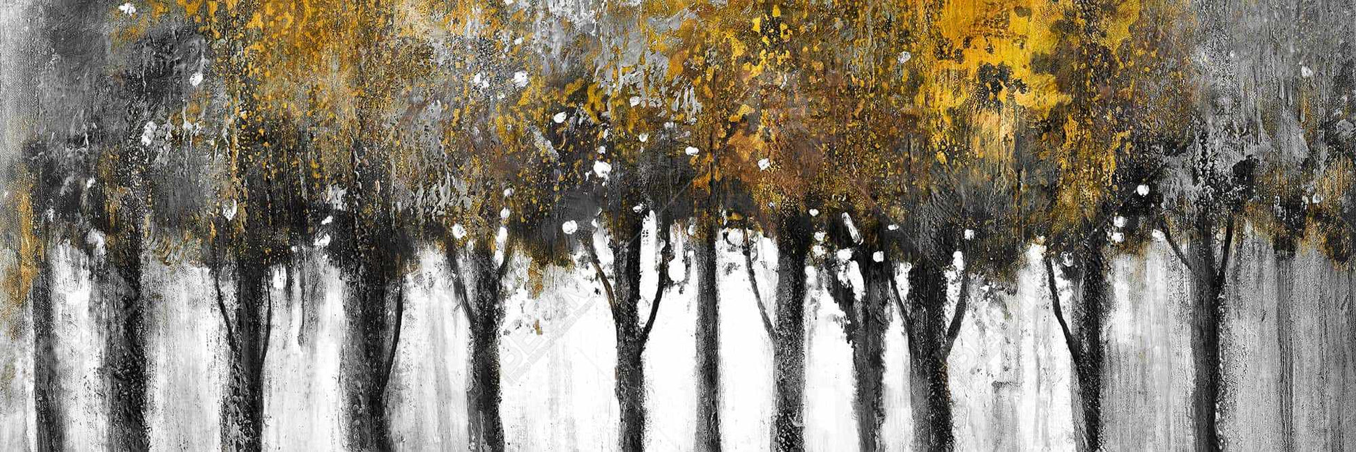 Toile grise contemporaine pour salon | Décor forêt illuminée