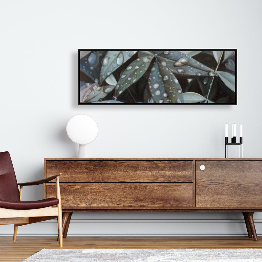 Feuilles après la pluie – Toile encadrée botanique | Décoration de salle de bain