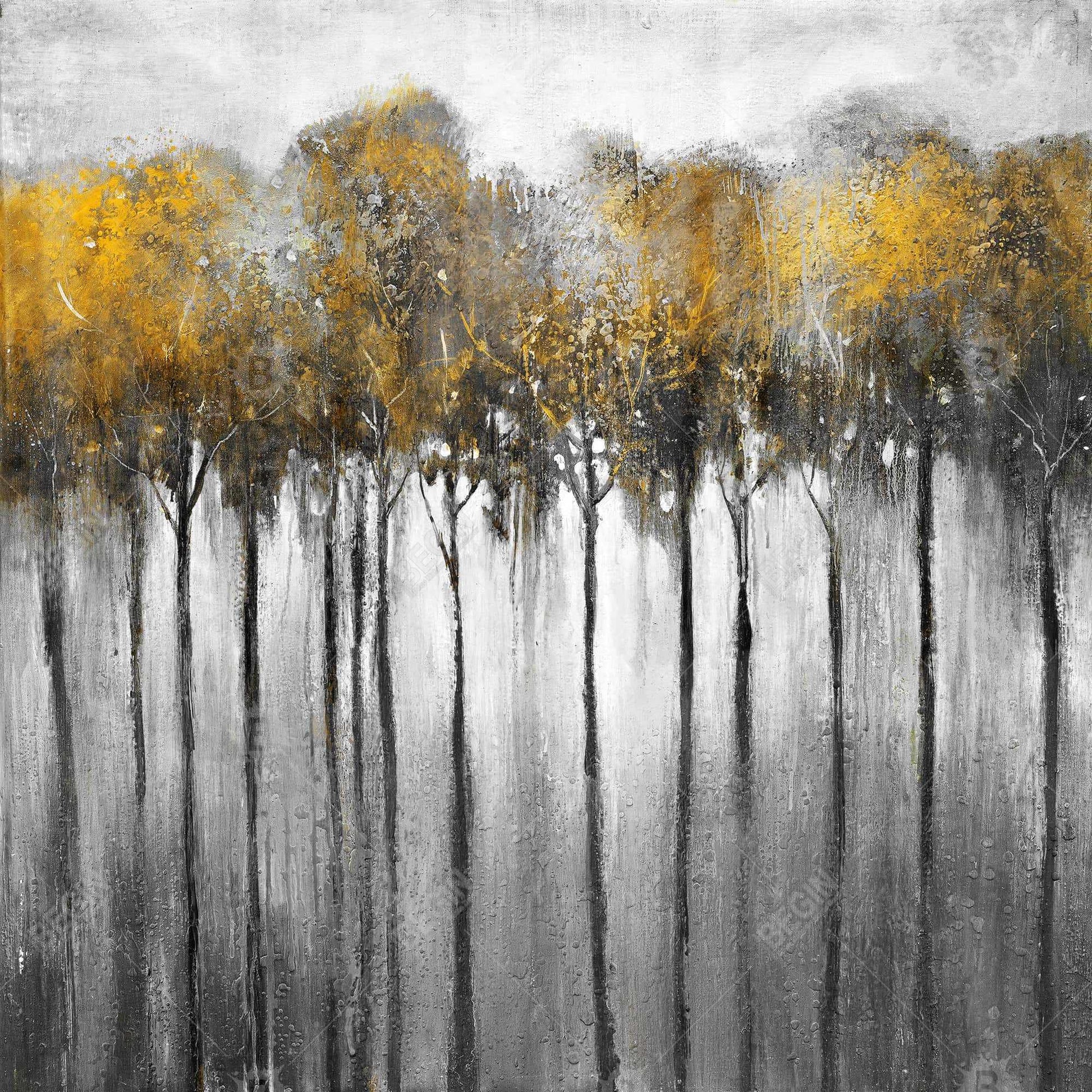 Forêt jaune abstraite | Toile de bureau avec arbres, décoration d'intérieur