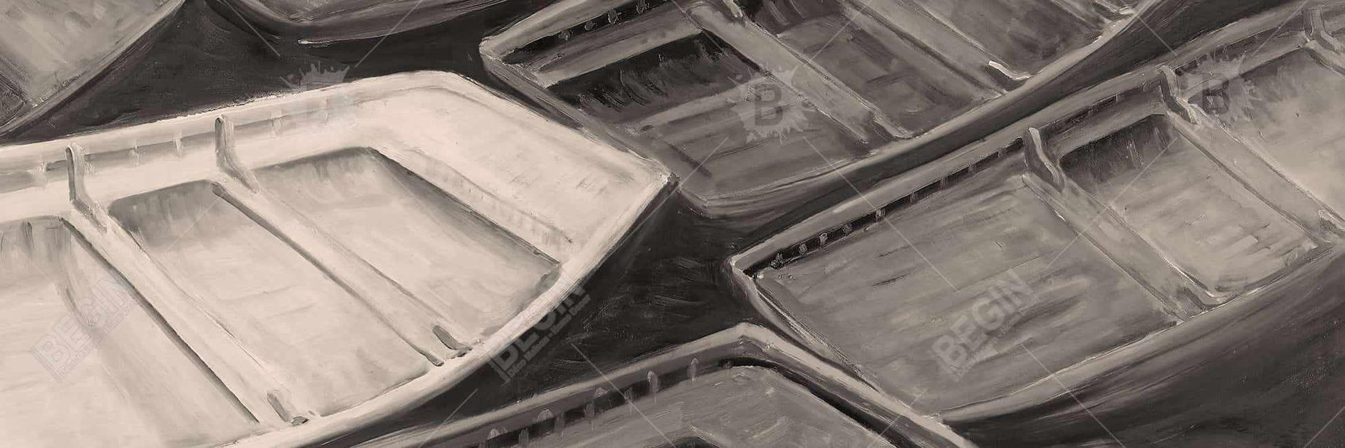 Small Canoes Sepia Style Canvas - Contemporary Boat Brown Decor