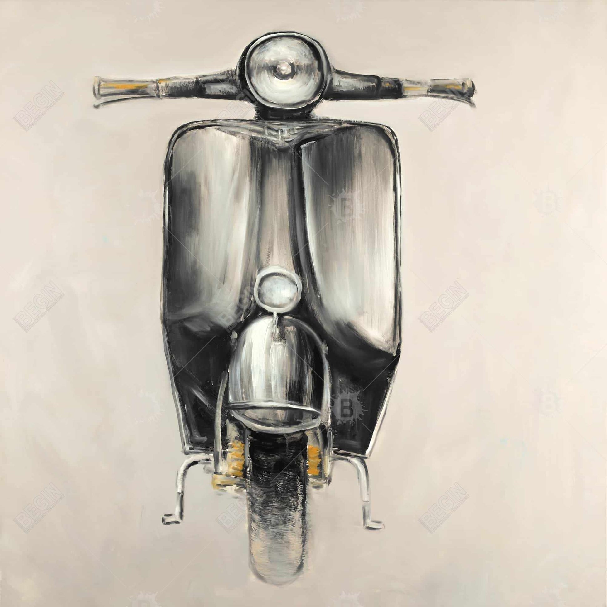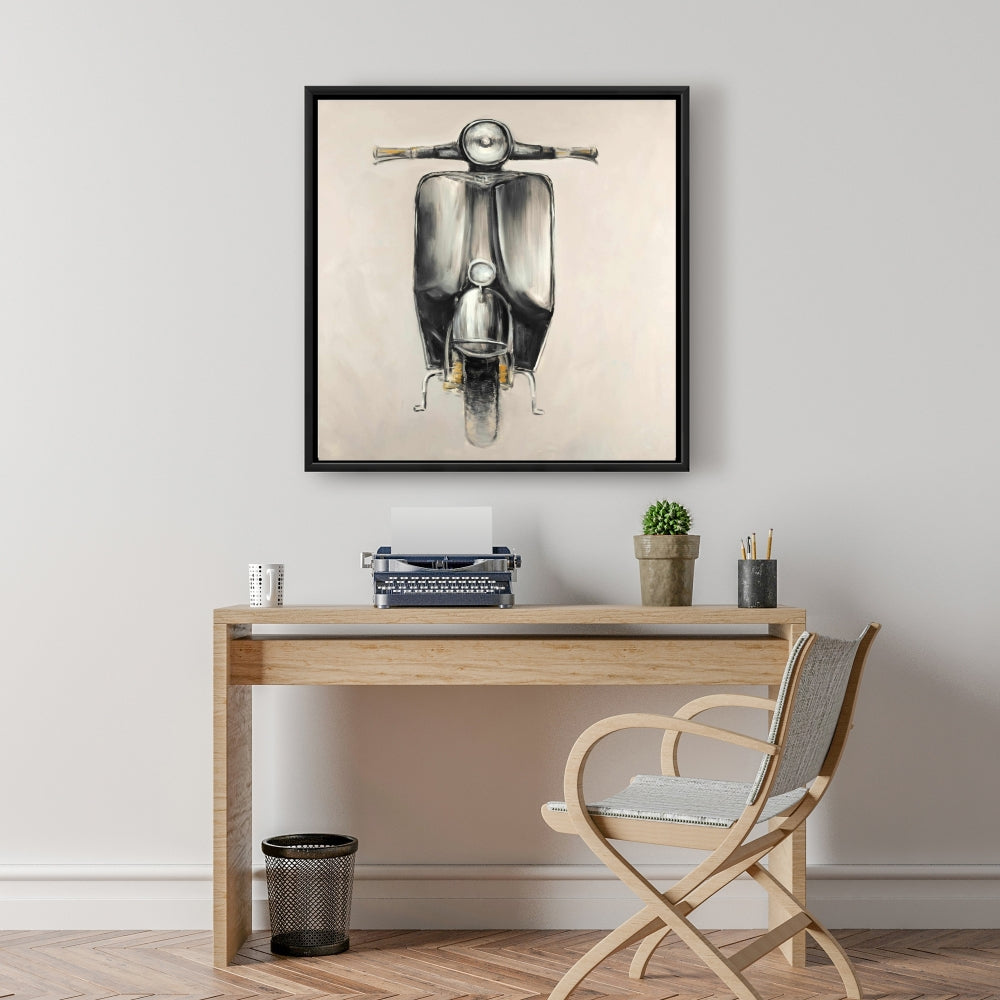 Petite toile encadrée grise avec cyclomoteur noir | Décoration murale de chambre