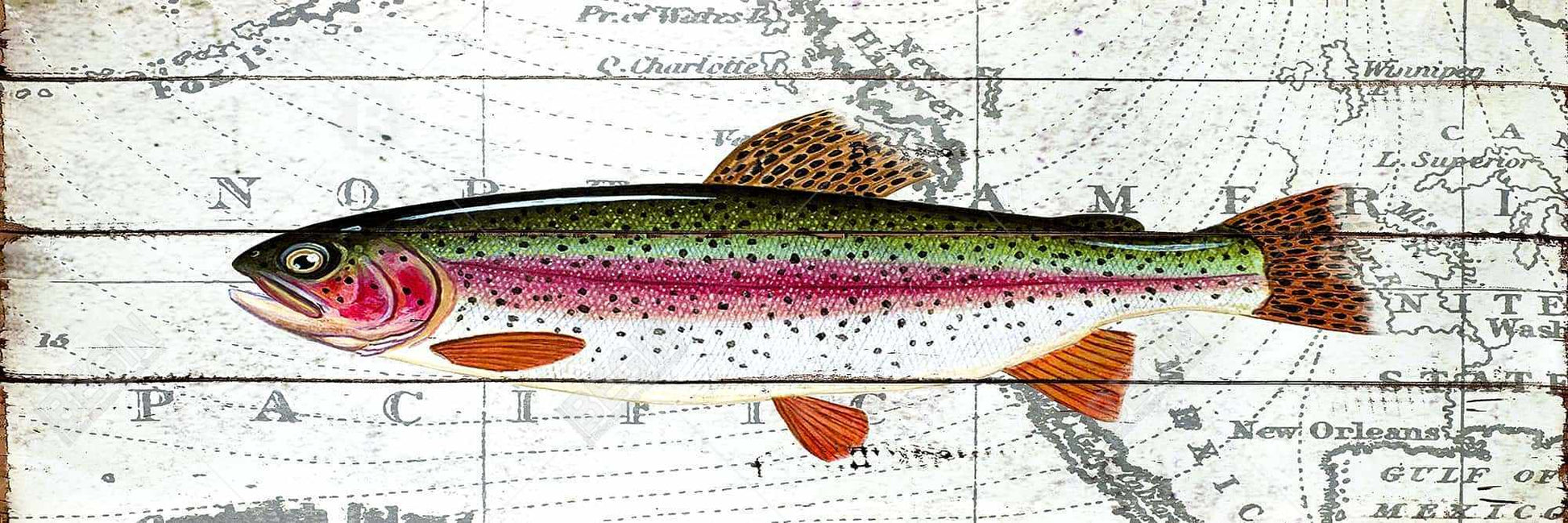 Toile encadrée « Truite sur carte du monde » | Décoration aquatique rouge
