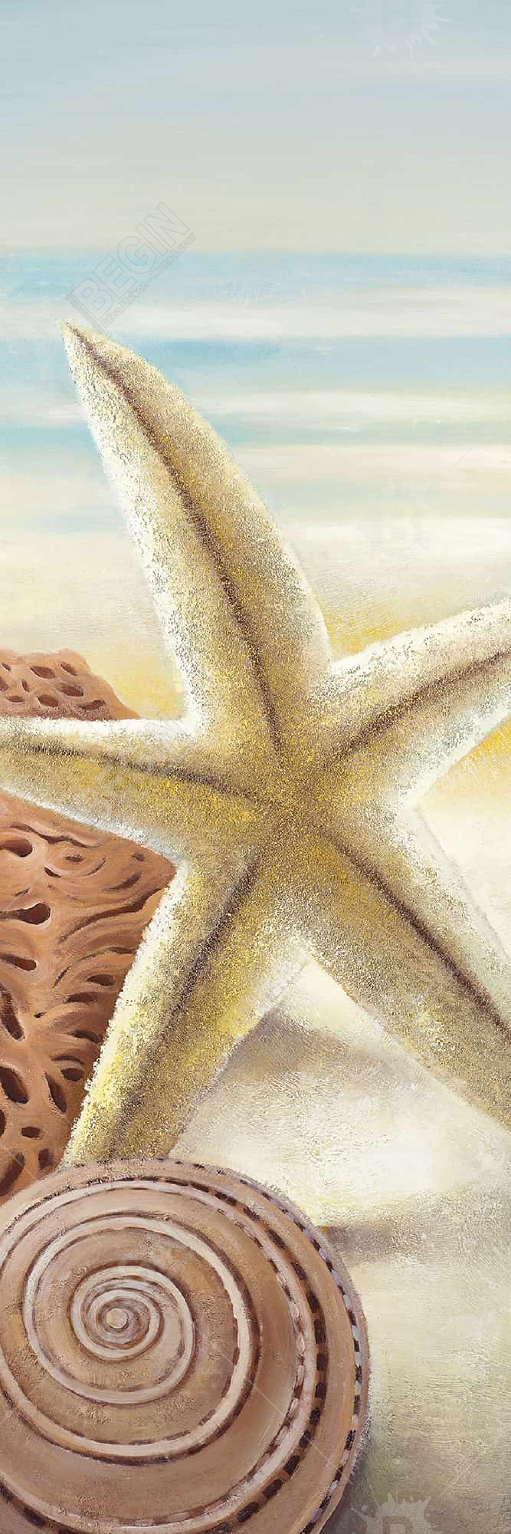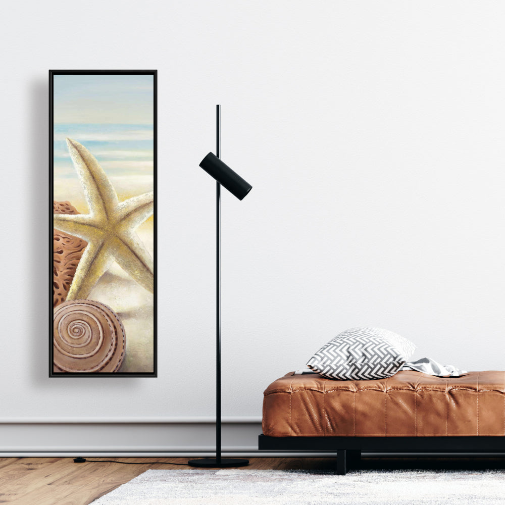 Toile « Étoiles de mer et coquillages » | Décoration d'intérieur encadrée bleue