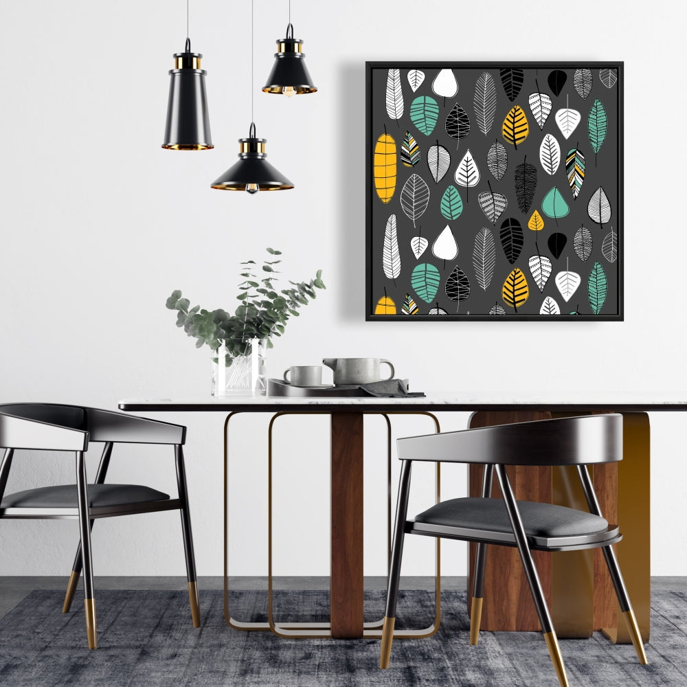 Toile encadrée grise à motifs de feuilles botaniques | Décoration murale