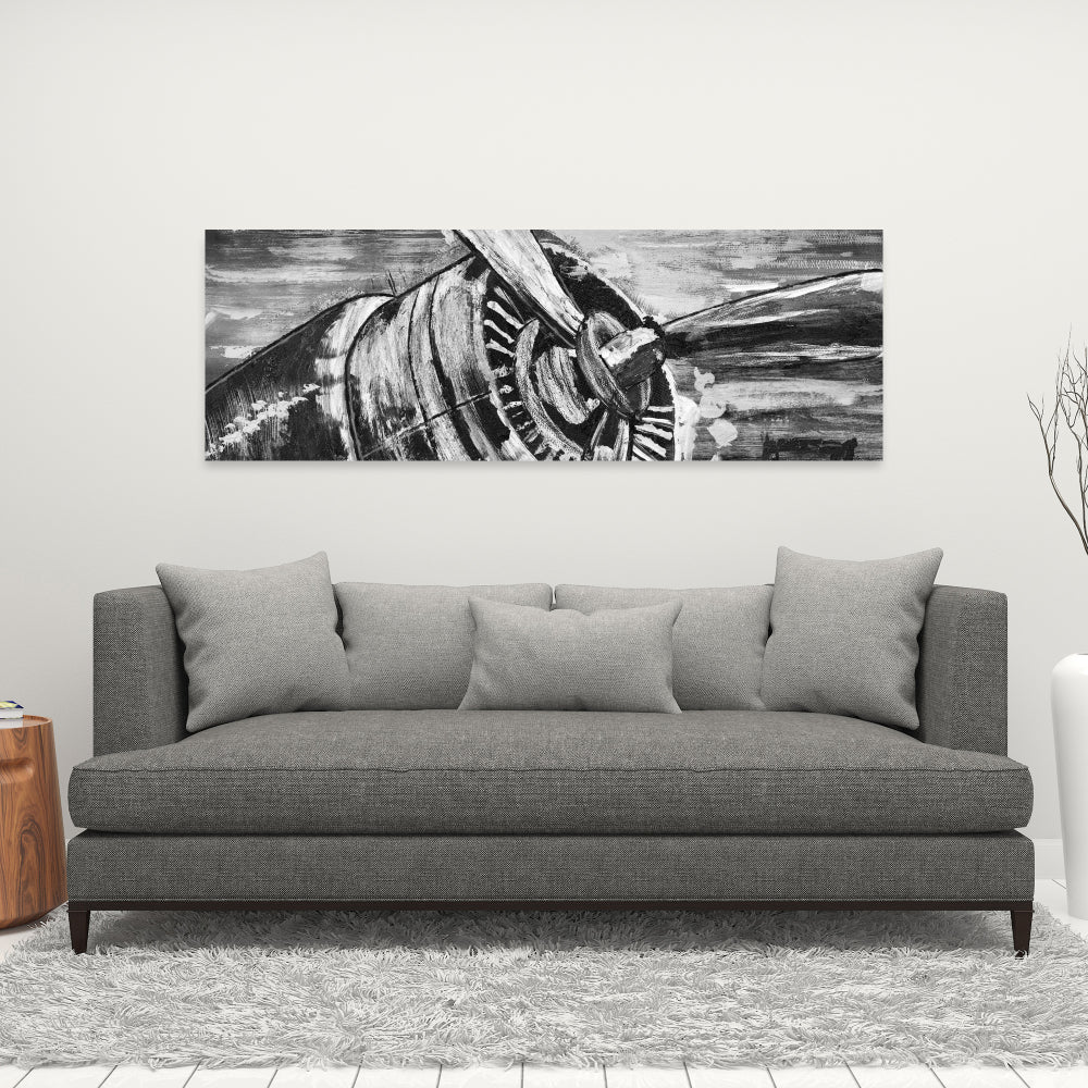 Elevate your home decor with the Transportation Gray Livingroom canvas featuring a vintage airplane propeller. Perfect for aviation enthusiasts and style-savvy homeowners, this artwork combines industrial charm with timeless elegance. The muted gray tones seamlessly integrate into diverse color palettes, making it an ideal addition to any living room, office, or study. This high-quality canvas captures intricate details of the propeller, evoking a sense of nostalgia and adventure. Crafted with precision, it offers durability and a sophisticated finish that transforms your space into a conversation starter. Whether your theme is modern, rustic, or minimalist, this vintage airplane propeller canvas complements any decor style. Enhance your home ambiance with this unique piece that celebrates the golden age of aviation. Perfect for gifting, it adds a touch of history and character to any room. Shop now to bring the captivating allure of vintage aviation into your living space.