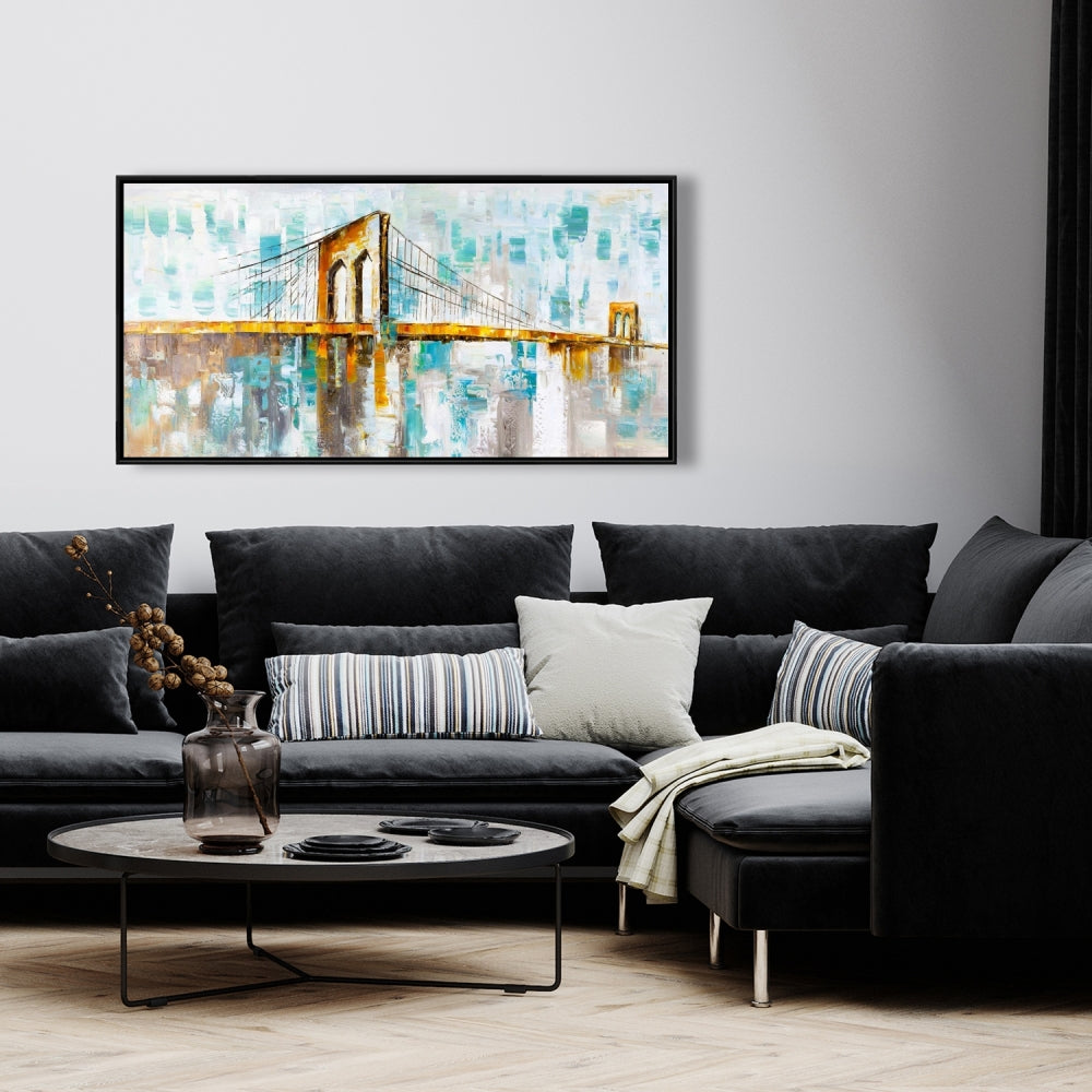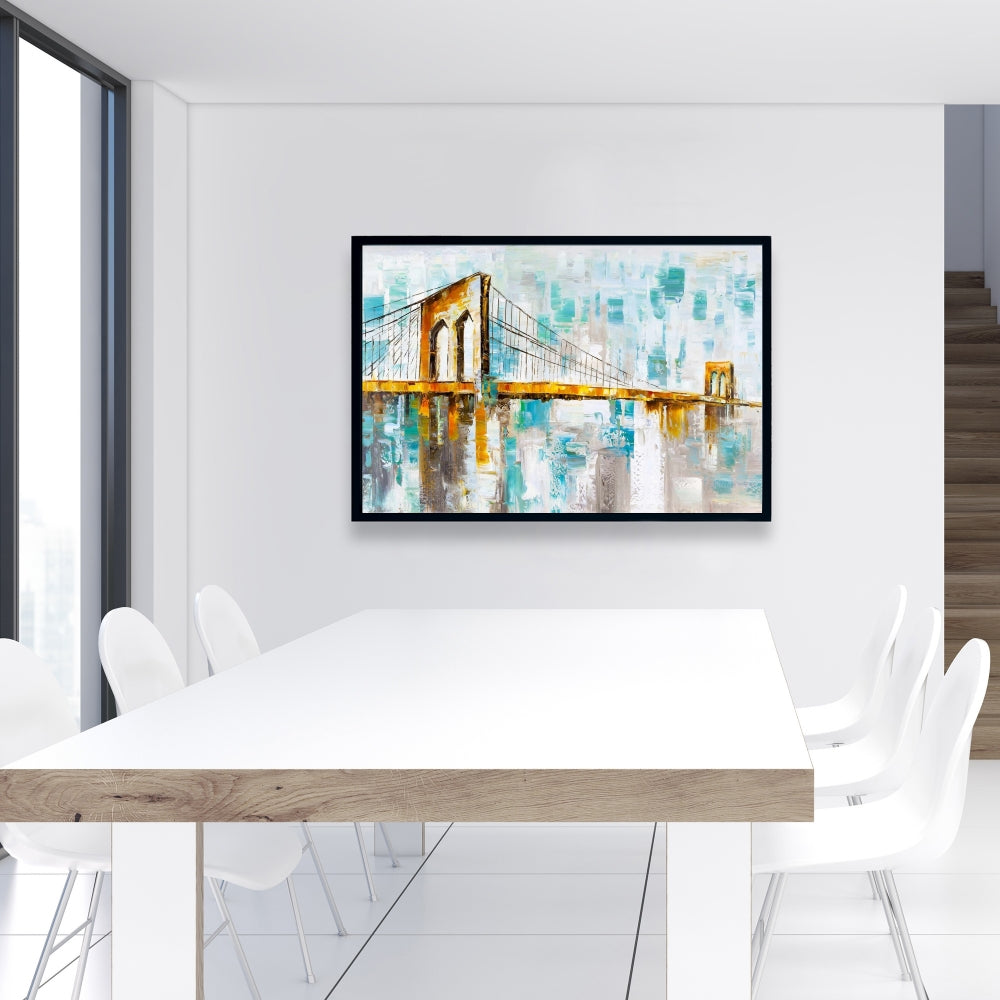 Toile industrielle marron représentant le pont de Brooklyn - Décoration murale