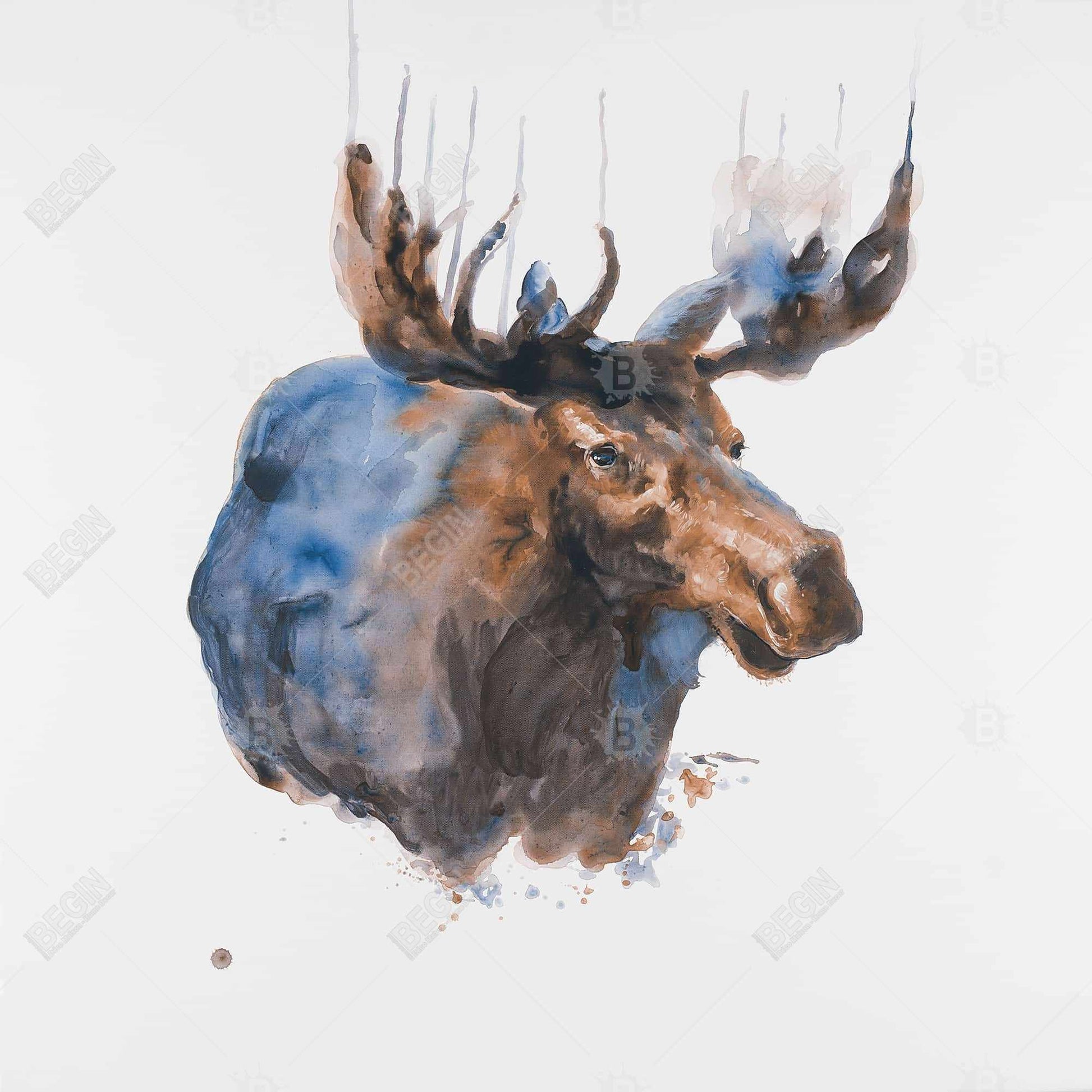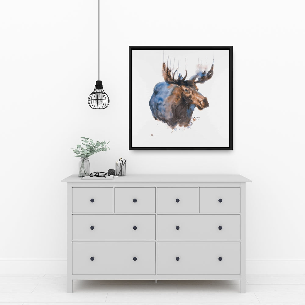 Toile abstraite d'élan bleu - Décoration animalière pour chambre à coucher | Art encadré