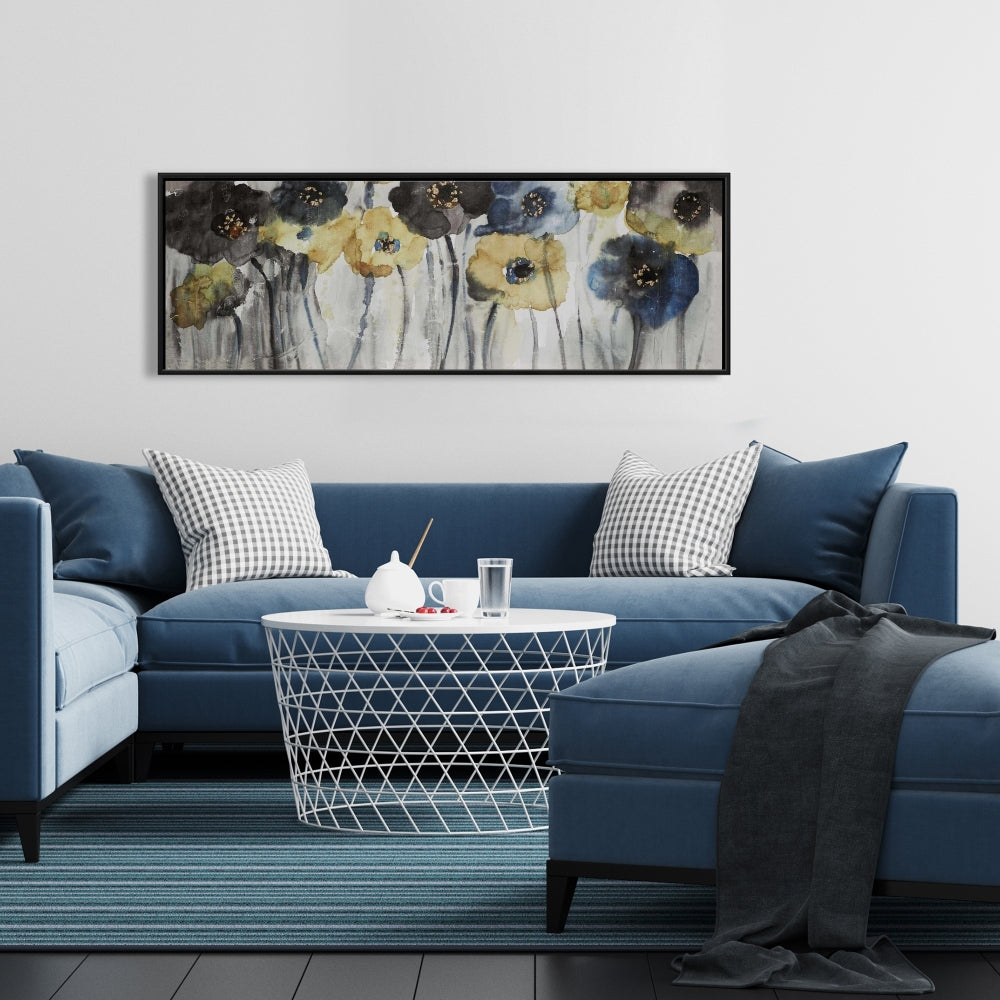 Fleurs grises, bleues et jaunes | Toile encadrée botanique