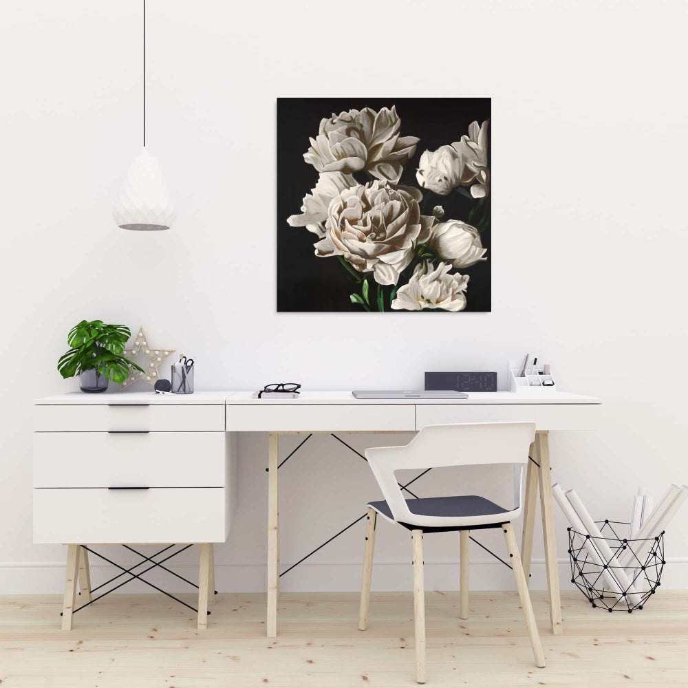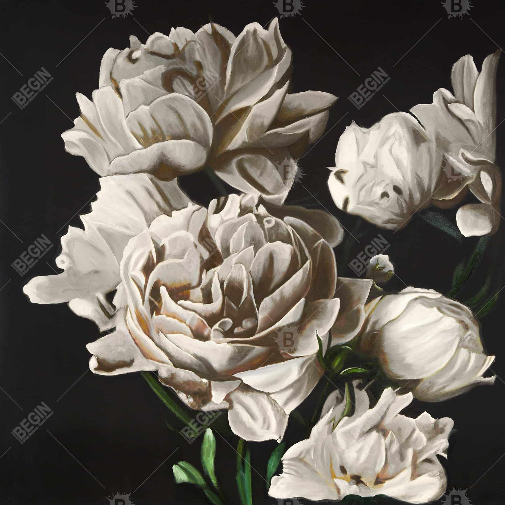 Toile romantique avec pivoines beiges - Décoration de salon marron