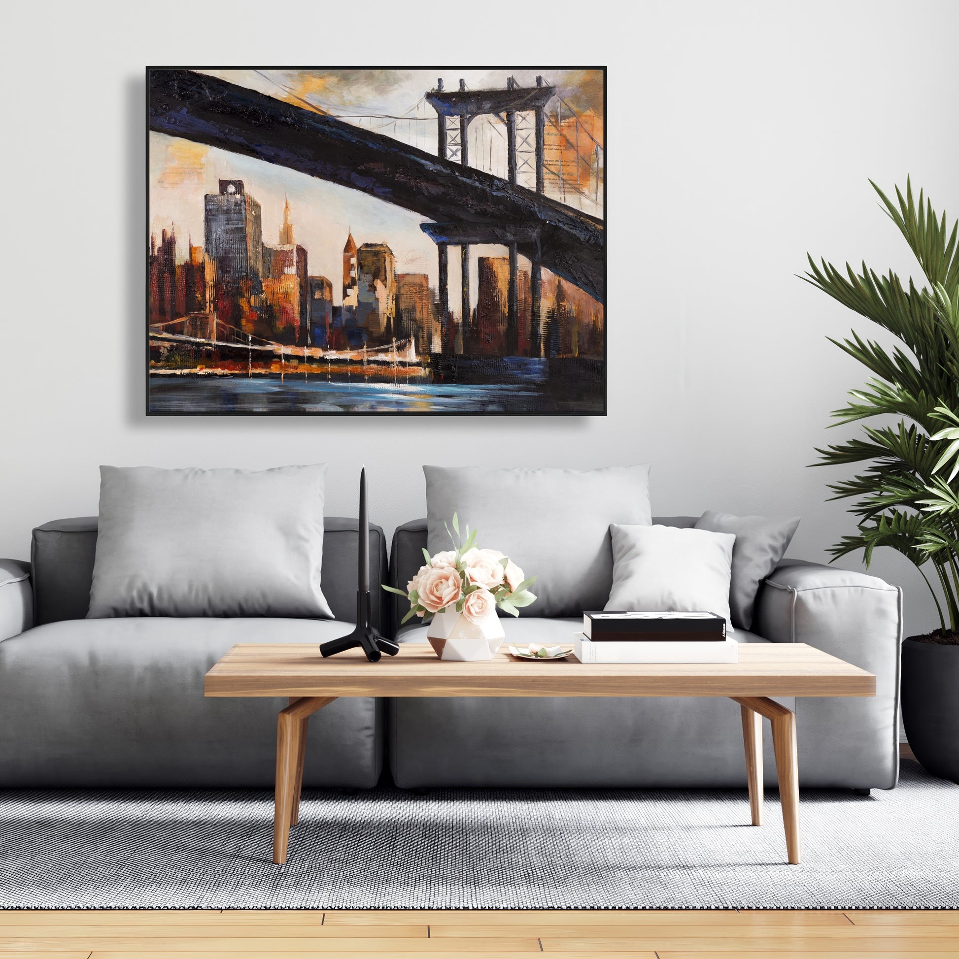 Elevate your home decor with the Bedroom Industrial Brown Framed Canvas of Sunset over New York. This captivating artwork captures the breathtaking beauty of New York City's skyline bathed in the warm hues of a sunset. The industrial-style brown frame adds a touch of modern elegance, perfectly complementing any bedroom interior. Measuring [insert dimensions], this canvas is crafted with high-quality materials to ensure durability and vibrancy. Ideal for city lovers and art enthusiasts, it serves as a stunning focal point that transforms your space into a serene urban retreat. Easy to hang, this canvas is perfect for adding character and sophistication to your home. Enhance your decor with this unique piece and experience the magic of a New York sunset every day. Perfect for gifting, it brings a piece of the Big Apple into any room, making it a must-have for those who appreciate the charm of cityscapes. Buy now to enrich your living space with this remarkable wall art.