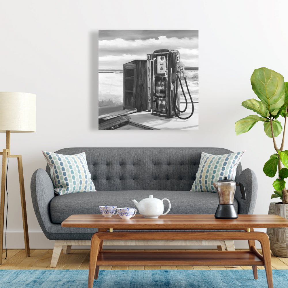 Old Gas Pump Canvas | Car White Still Life Home Decor Art