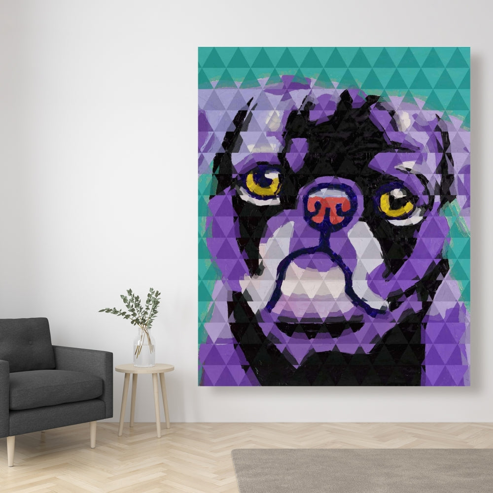 Elevate your home decor with the Animals Bedroom Purple Canvas featuring Geometric Pug. This stunning piece blends modern geometric design with the charming image of a pug, set against a soothing purple background. Perfect for animal lovers and art enthusiasts, this canvas adds a touch of whimsy and sophistication to any bedroom. The contemporary geometric style ensures it complements a variety of decor themes, from minimalist to eclectic. Crafted with high-quality materials, this canvas is durable and fade-resistant, ensuring long-lasting beauty. Ideal for bedrooms, living rooms, or offices, the Geometric Pug canvas makes a unique gift for pug lovers or anyone seeking to enhance their space with trendy artwork. Easy to hang and available in multiple sizes, it fits effortlessly into any space. Transform your room into a stylish haven with this eye-catching piece that combines the love for animals with modern art. Order your Animals Bedroom Purple Canvas today and bring a playful yet elegant vibe to your home decor.