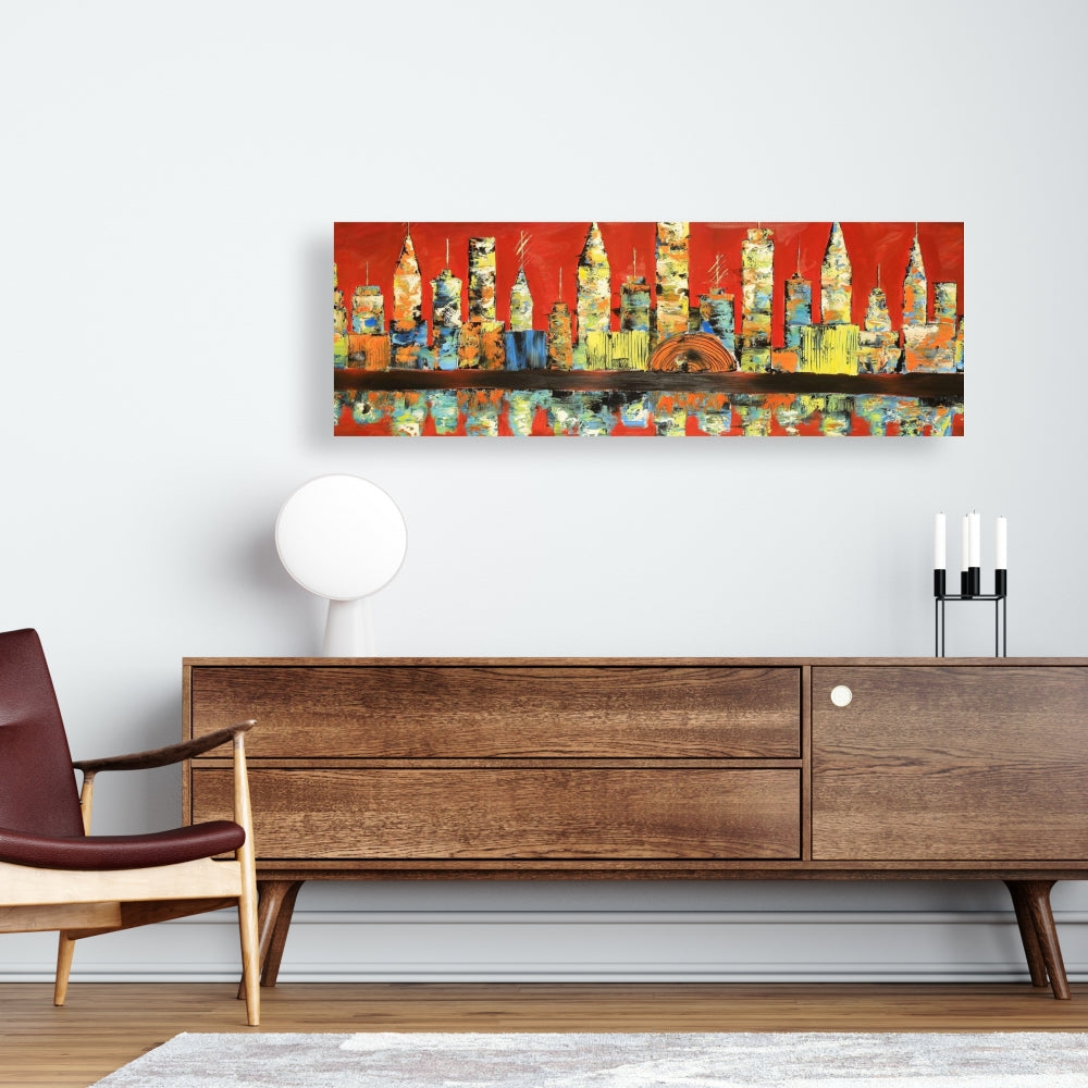 Red Abstract Skyline Yellow Canvas - Bedroom Home Decor