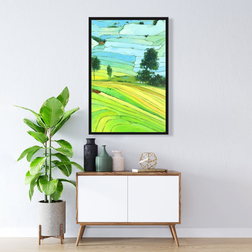 Rice Fields of Vietnam | Blue Framed Canvas for Home Decor
