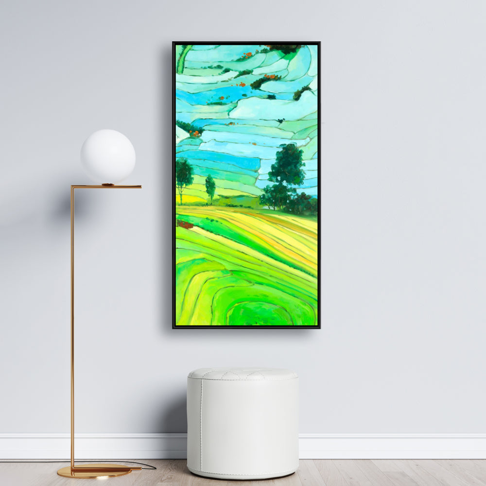 Transform your living space with the breathtaking "Rice Fields of Vietnam" canvas, framed in a serene blue hue to accentuate its vibrant landscape. This exquisite piece captures the lush, terraced rice fields that stretch across Vietnam's countryside, offering a glimpse into the harmonious blend of nature and tradition. Perfect for home decor enthusiasts seeking to add a touch of tranquility and cultural richness to their interiors, this landscape canvas serves as a conversation starter and a window to the Far East. The high-quality print ensures vivid colors and fine details, bringing the scenic beauty of Vietnam into your home. Ideal for living rooms, bedrooms, or offices, this framed canvas not only enhances your decor but also provides a calming ambiance. Easy to hang and versatile in style, it complements both modern and traditional interiors. Elevate your space with the "Rice Fields of Vietnam" canvas and invite the zen-like essence of these iconic landscapes into your home.