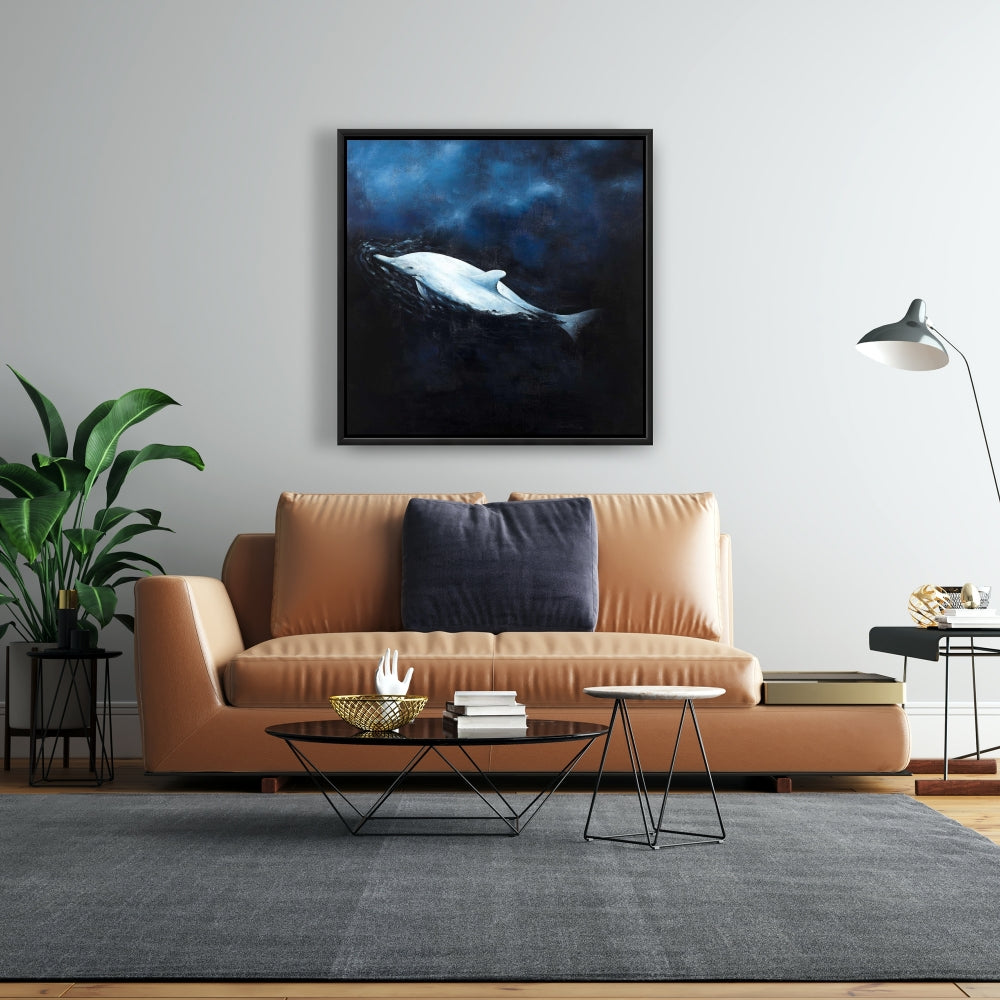 Swimming Dolphin Canvas | Blue Frame | Home Decor Art