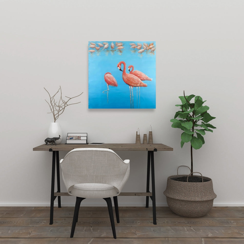 Group of Flamingos Blue Canvas | Home Decor Wall Art