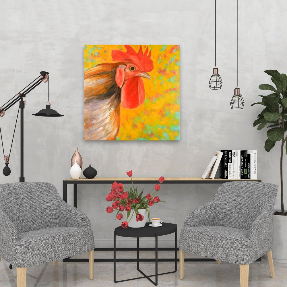 Colorful Rooster Canvas - Yellow Farm Animals Home Decor