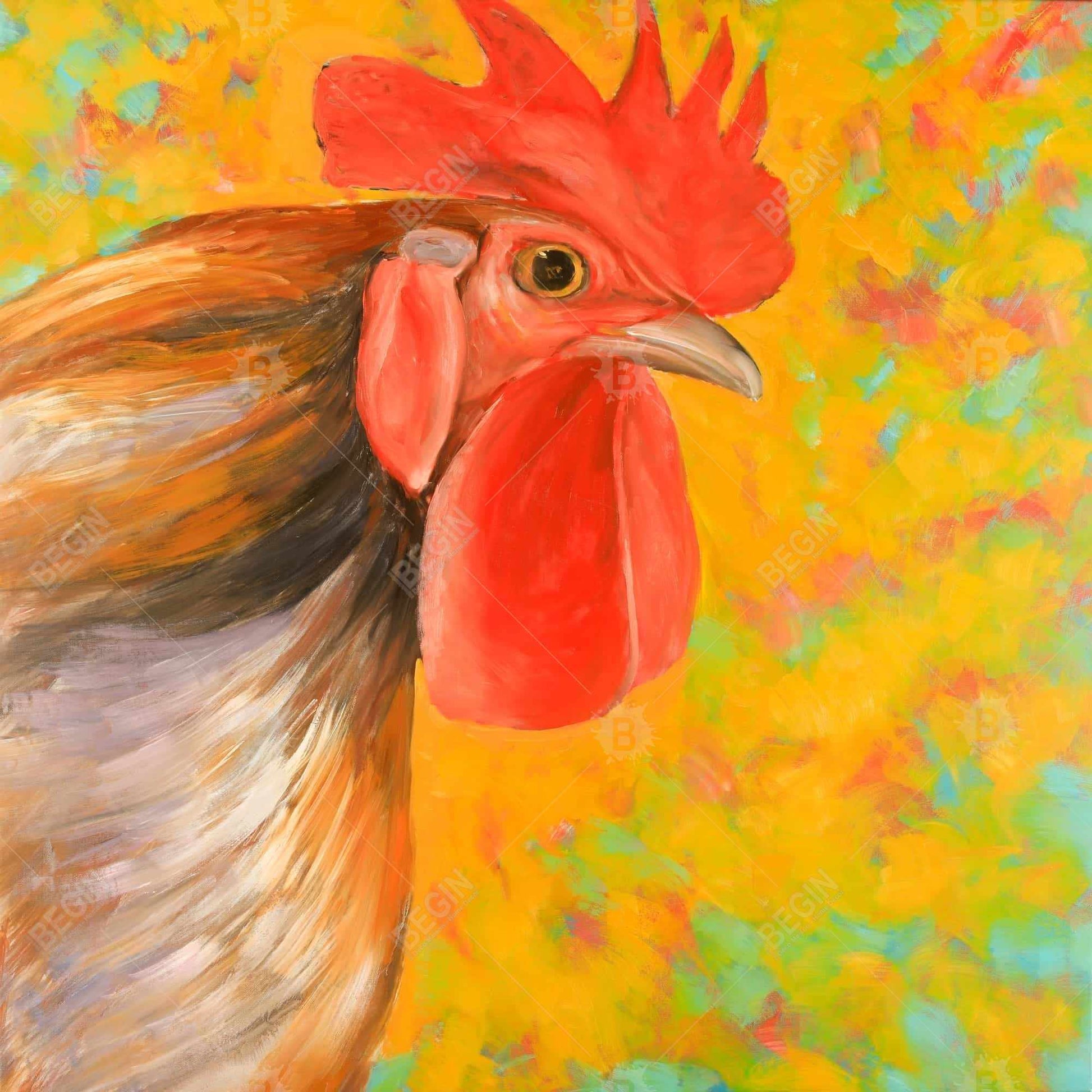 Easy to hang and maintain, this colorful rooster canvas is a hassle-free way to elevate your home decor. Transform your space with this unique piece, adding warmth and character to your walls. Order now to experience the vibrancy and charm of the Yellow Animals Farm Animals Canvas - Colorful Rooster.