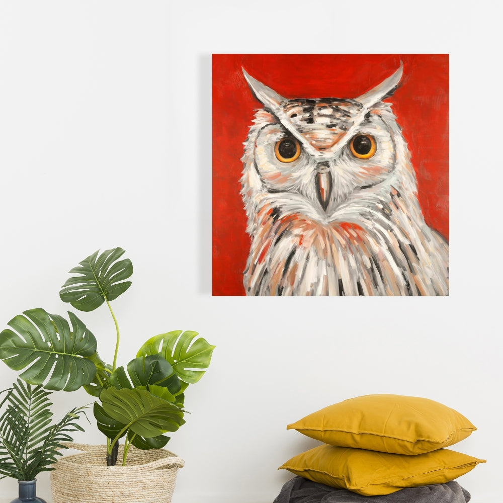 Colorful Eagle Owl Canvas | Gray Bird Wall Art Home Decor