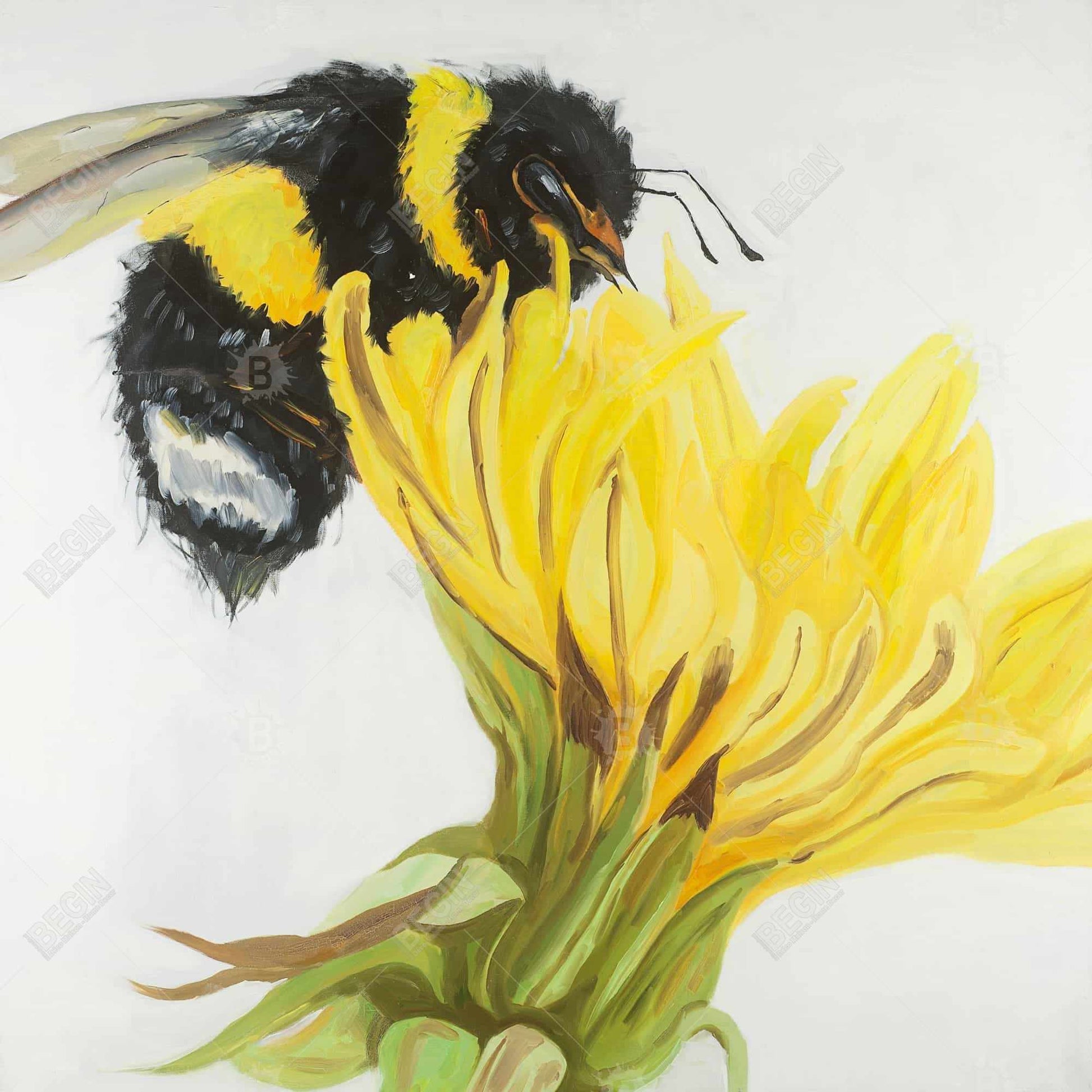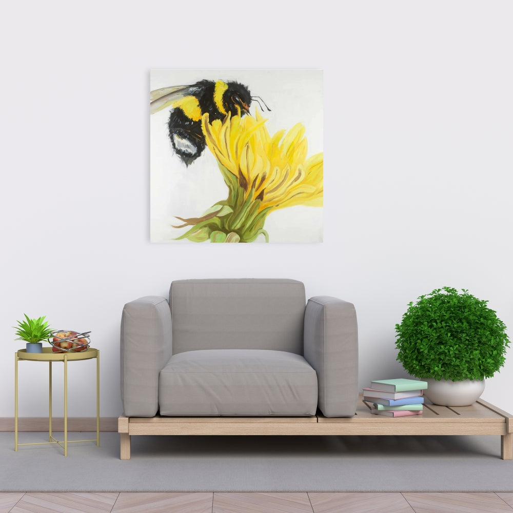 Little Bumblebee on a Dandelion Canvas | Modern Bedroom Art