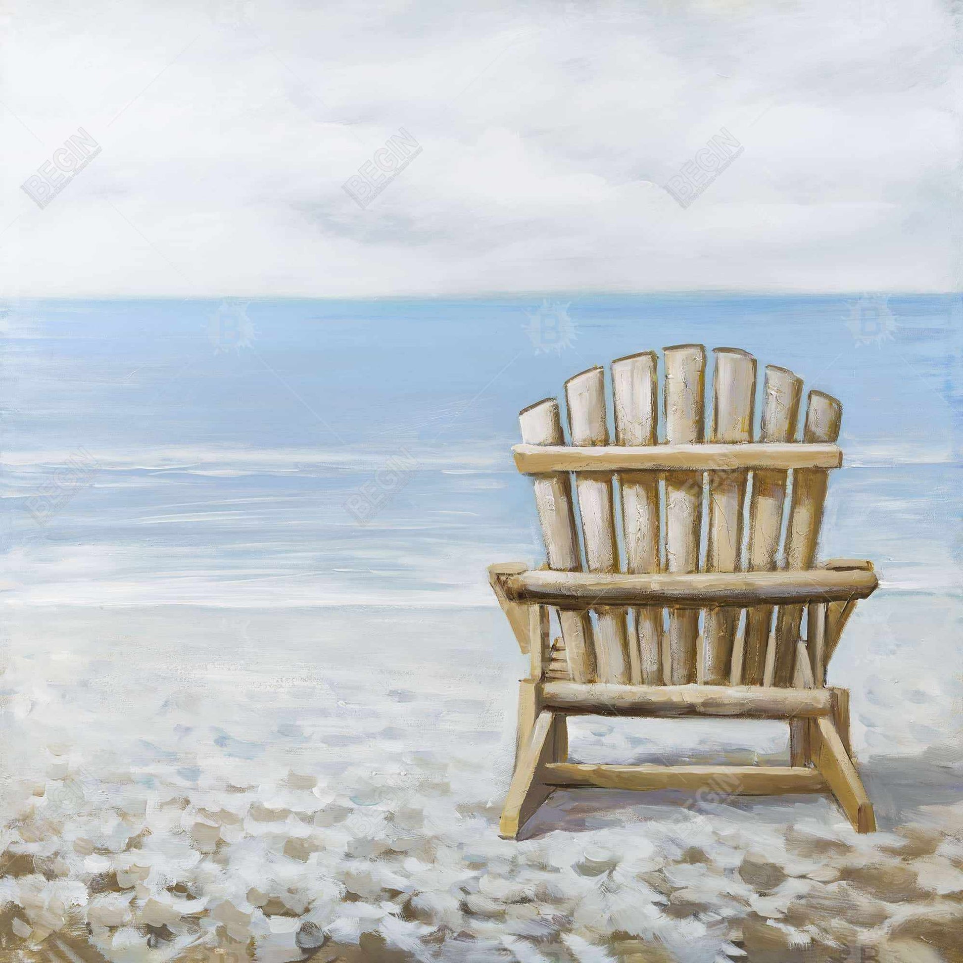 Wood Beach Chair Canvas - Blue Marine Framed Art for Bedroom