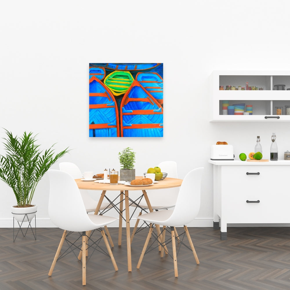 Colorful Canoes Canvas | Retro Coastal Bedroom Wall Art Decor