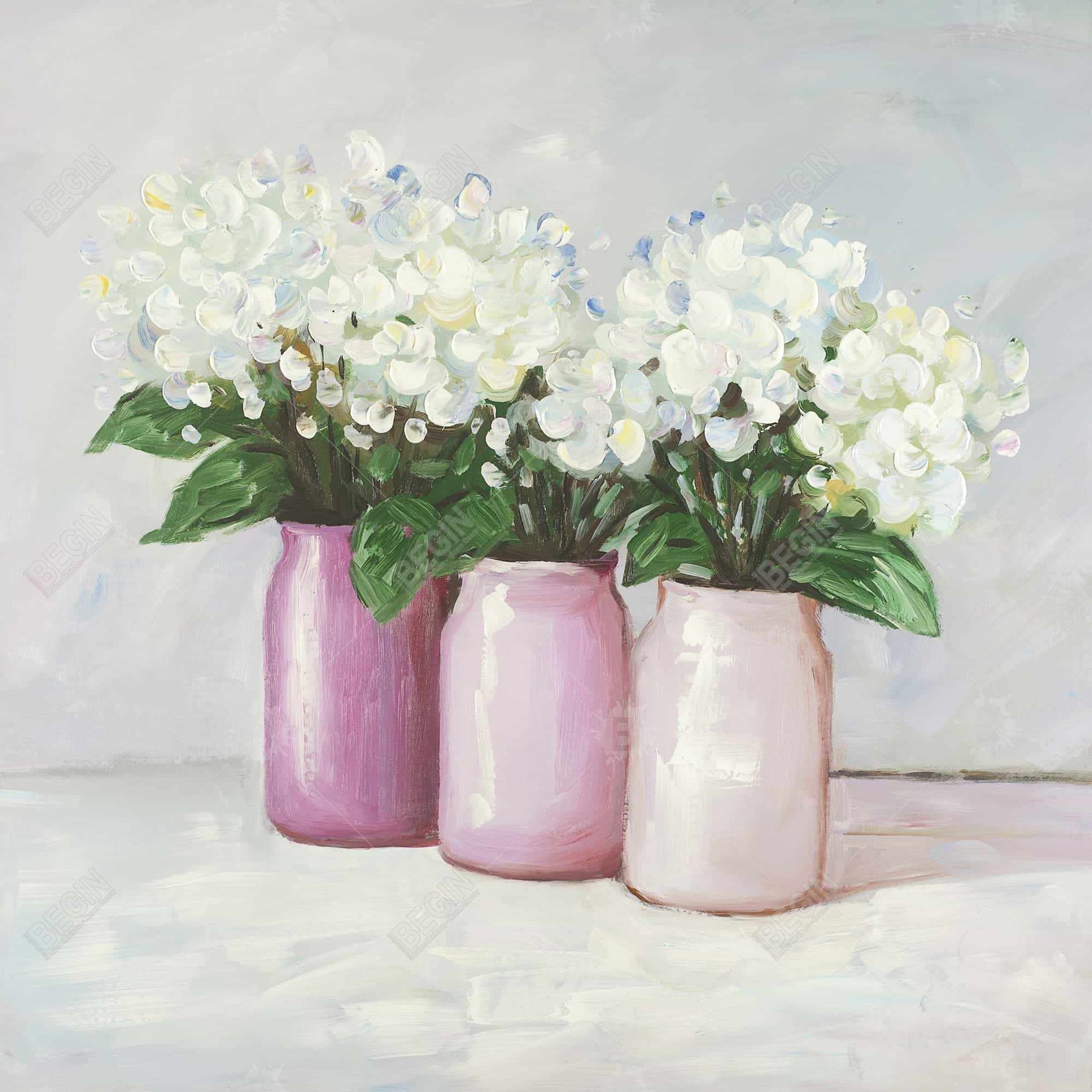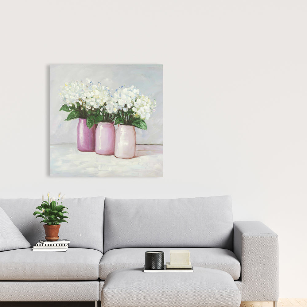 Hydrangea Flowers in Pink Vases Canvas - Floral Home Decor