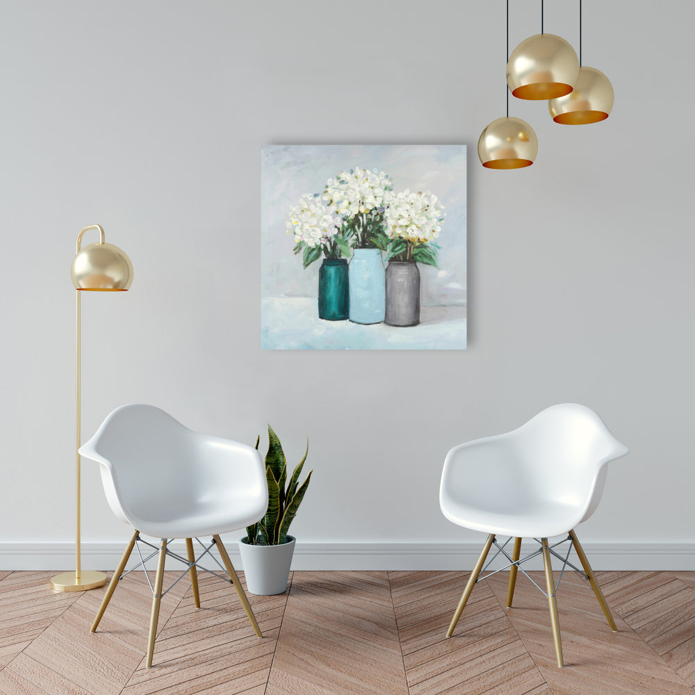 Hydrangea Flowers in Blue Vases Canvas | Home Decor Art