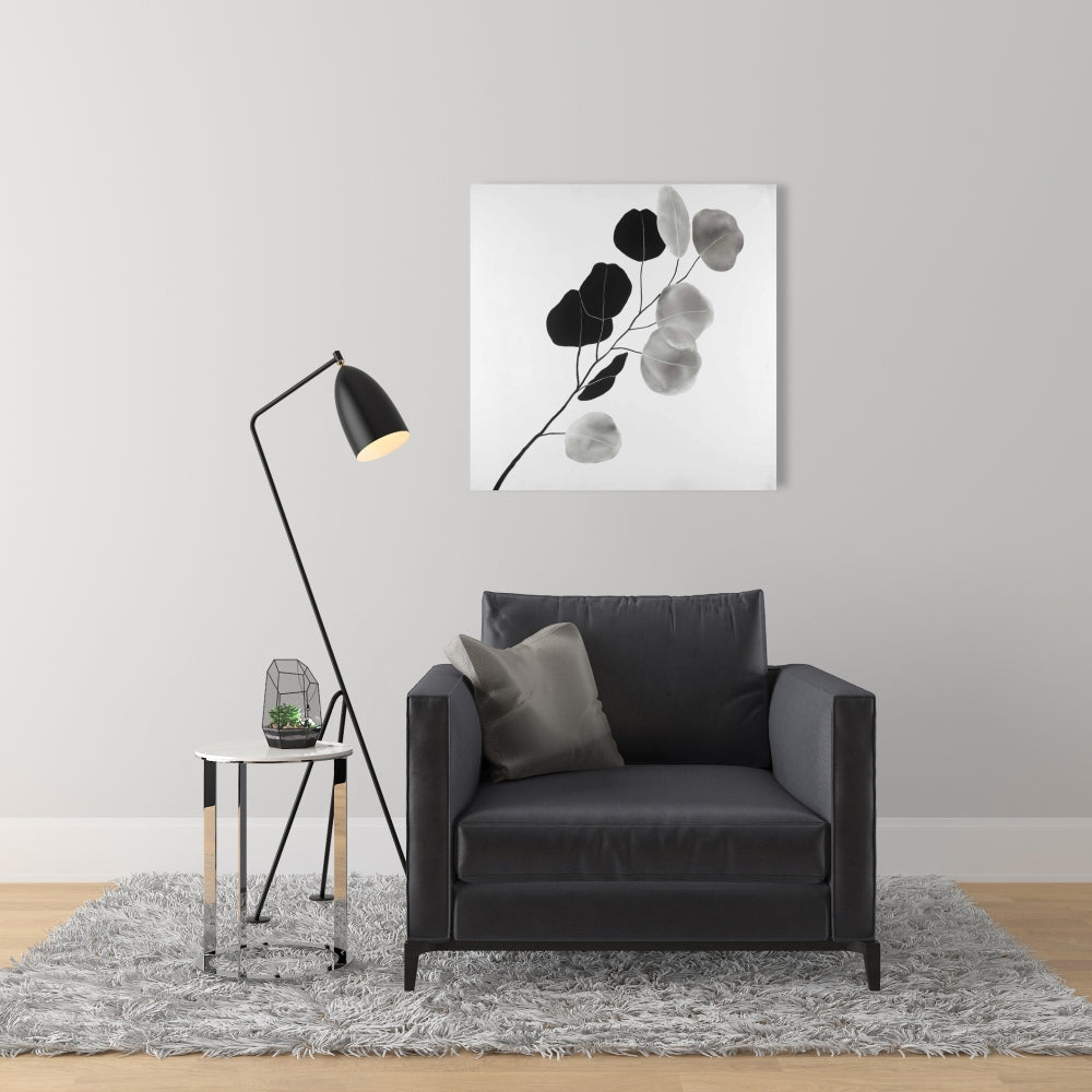 Grayscale Branch Leaves Canvas | Minimalist Botanical Decor