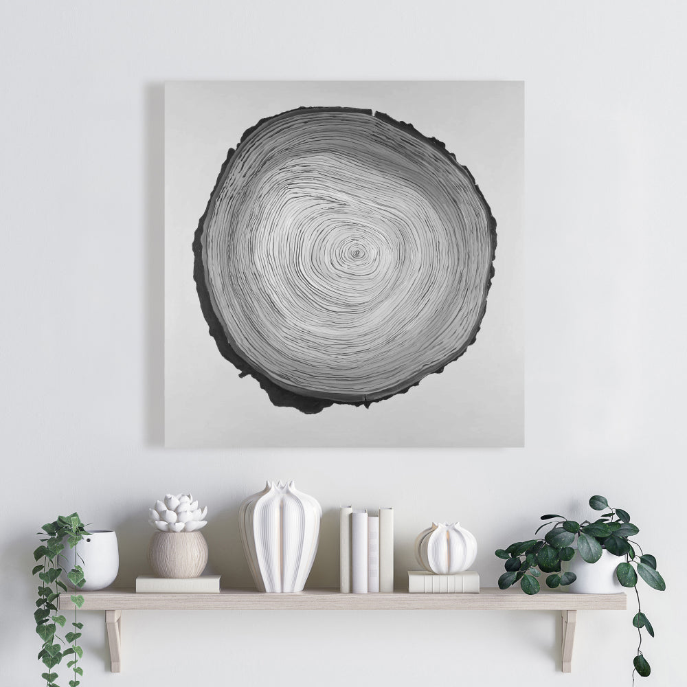 Grayscale Round Wood Log Gray Canvas - Monochrome Bedroom Decor
