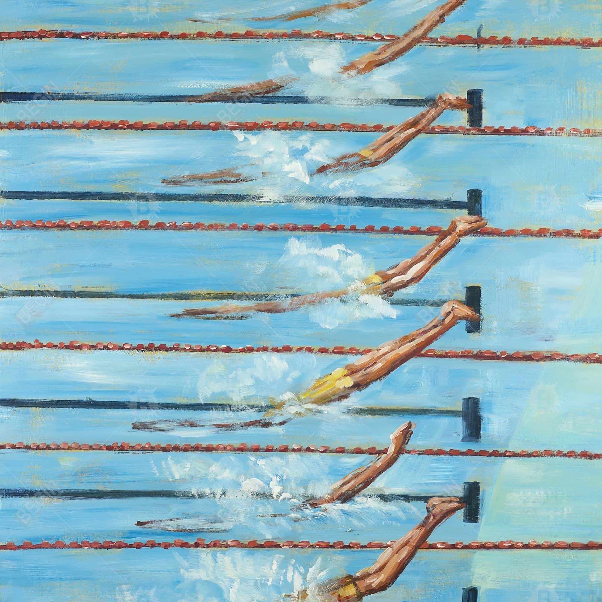 Olympic Swimmers Blue Canvas - Modern Man Cave Wall Art