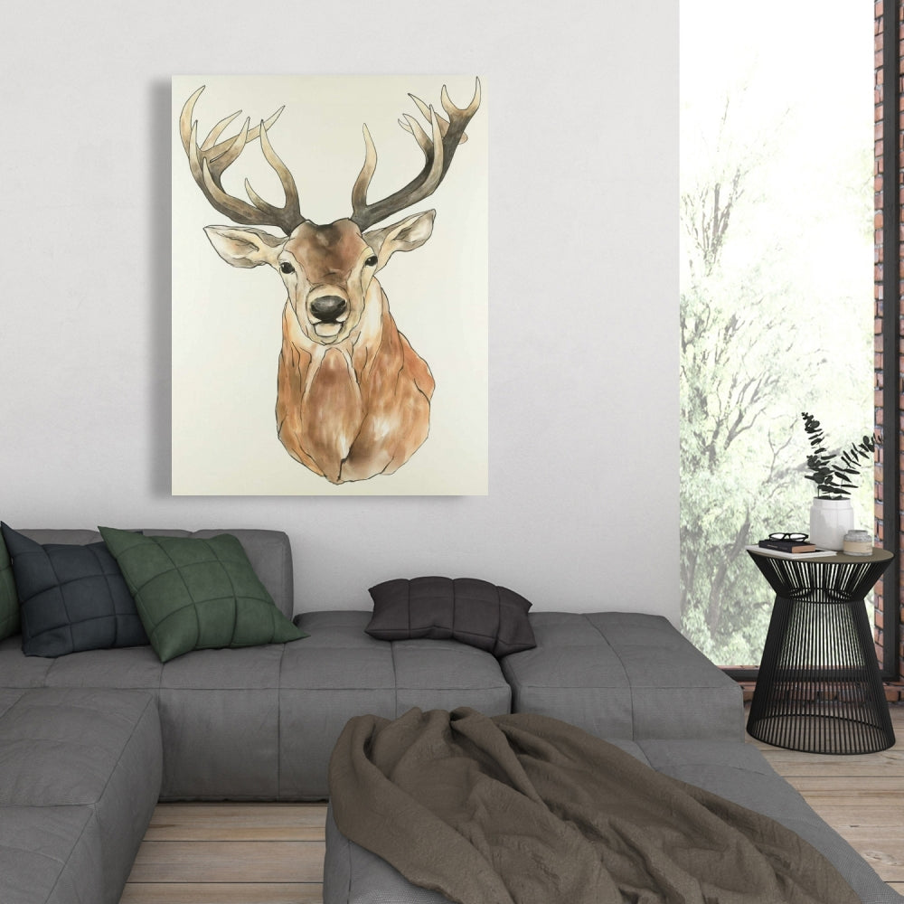Front Deer Portrait Canvas - Brown Deer Bedroom Wall Art